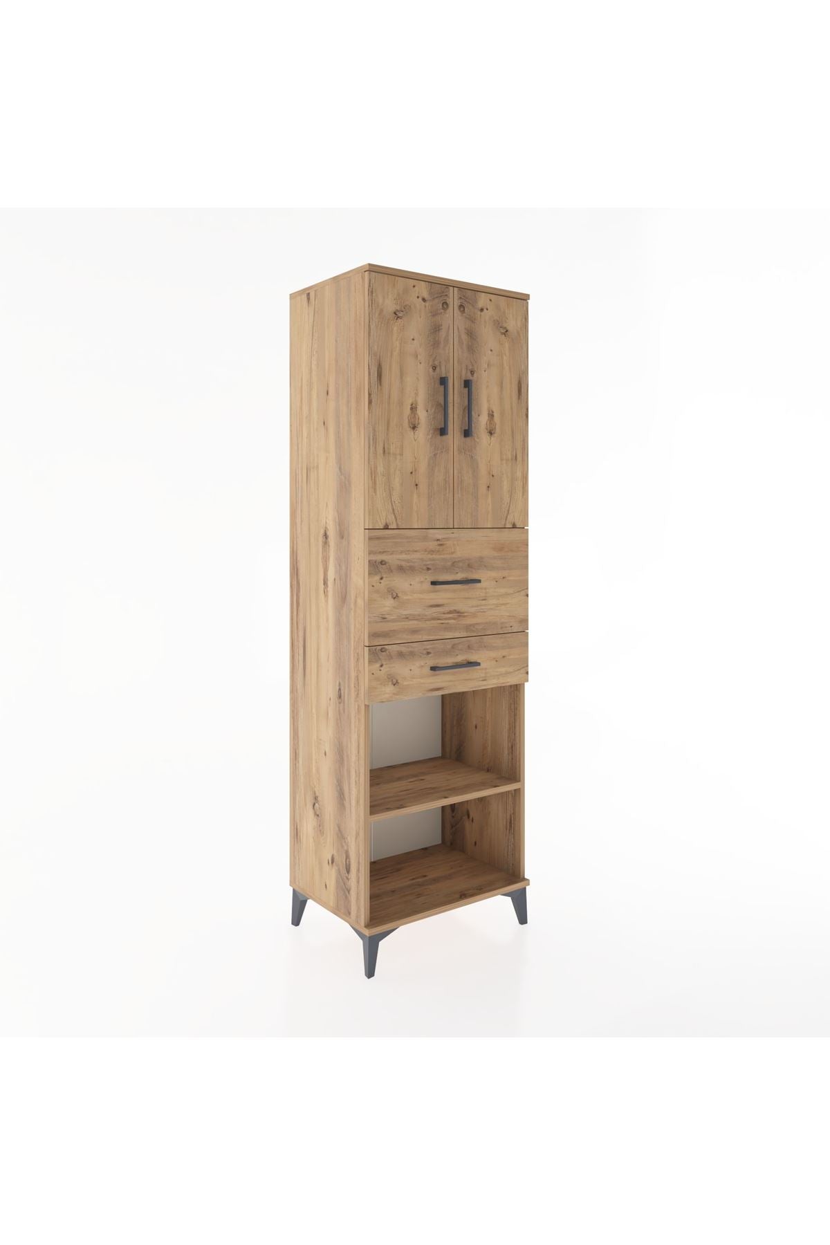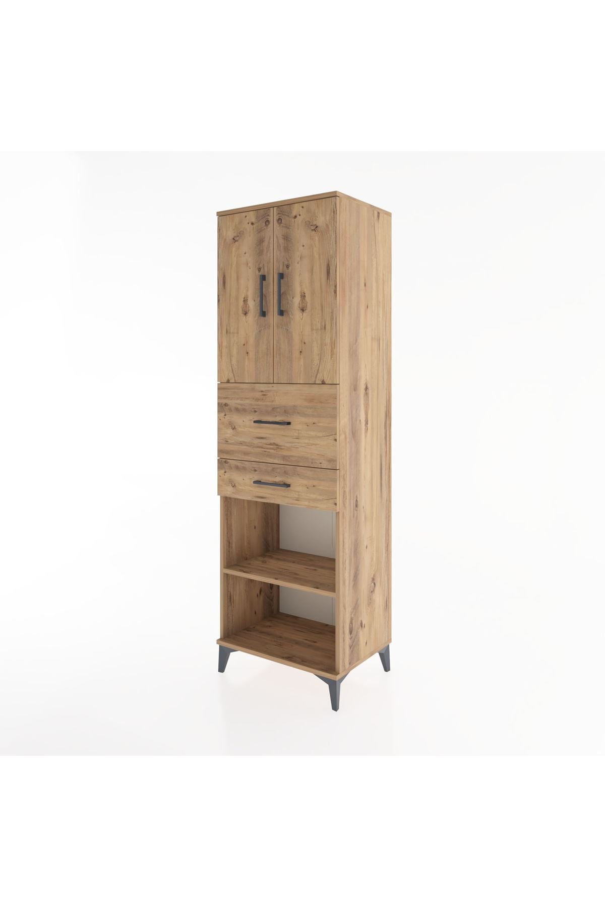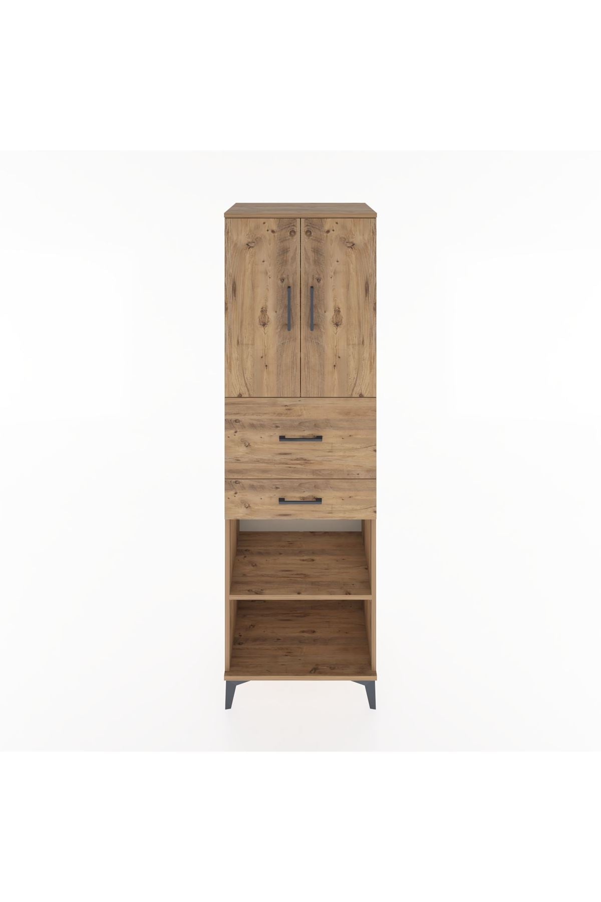 Hyperion Dolap 4 Raflı 2 Çekmeceli 2 Kapaklı 60x44x195 Çam-Çam