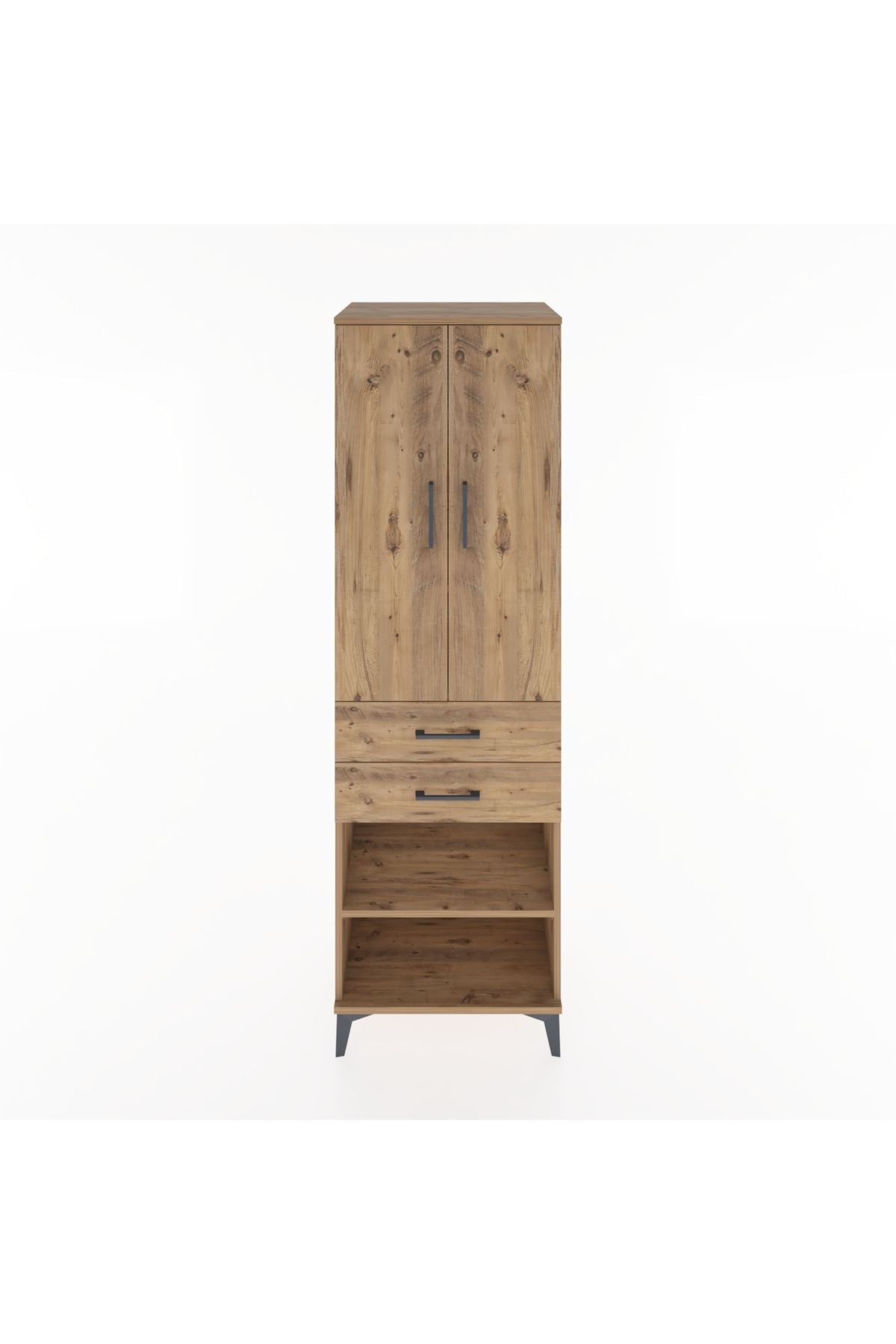 Hyperion Dolap 4 Raflı 2 Çekmeceli 2 Kapaklı 60x44x195 Çam-Çam
