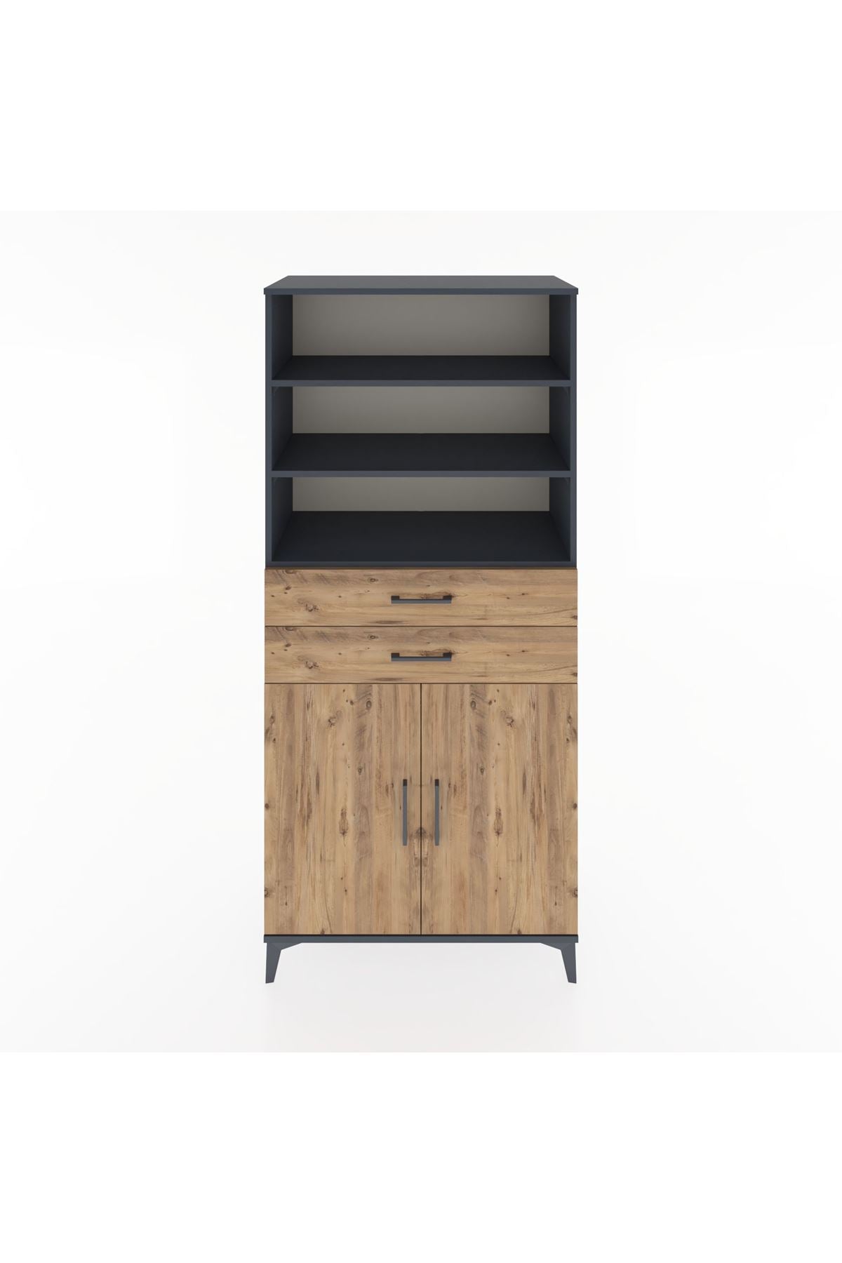 Hyperion Dolap 4 Raflı 2 Çekmeceli 2 Kapaklı 88x44x195 Antrasit-Çam