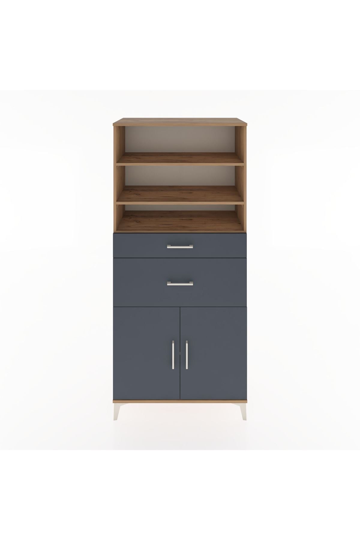 Hyperion Dolap 4 Raflı 2 Çekmeceli 2 Kapaklı 88x44x195 Çam-Antrasit