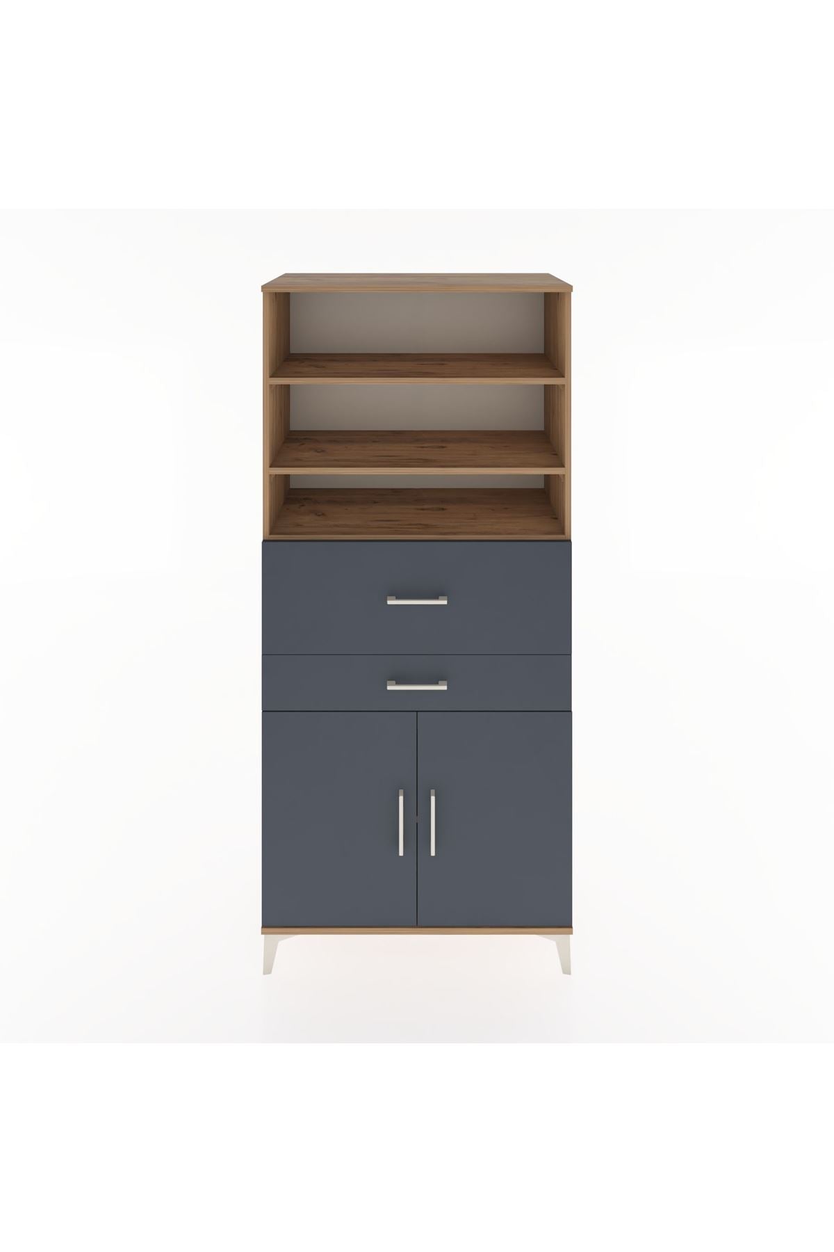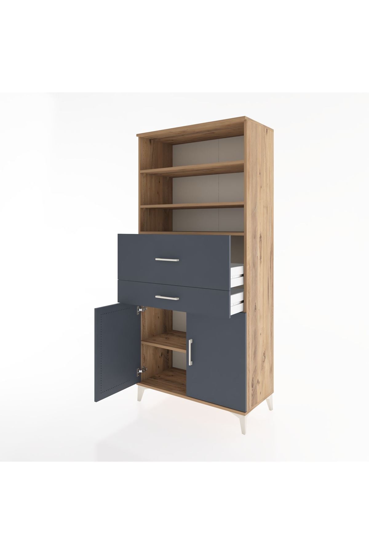 Hyperion Dolap 4 Raflı 2 Çekmeceli 2 Kapaklı 88x44x195 Çam-Antrasit