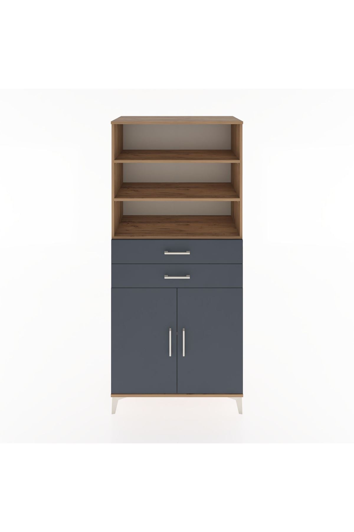 Hyperion Dolap 4 Raflı 2 Çekmeceli 2 Kapaklı 88x44x195 Çam-Antrasit