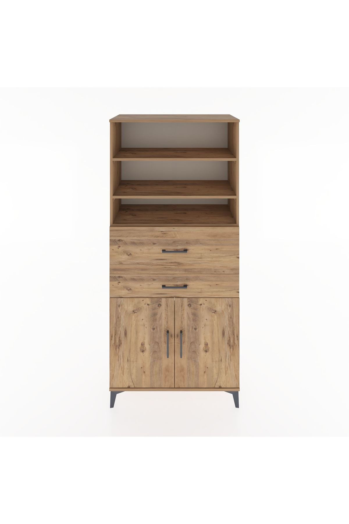 Hyperion Dolap 4 Raflı 2 Çekmeceli 2 Kapaklı 88x44x195 Çam-Çam