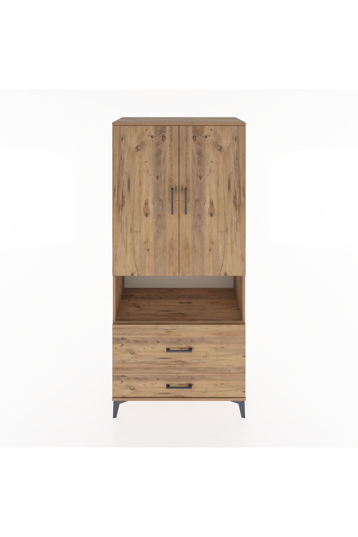 Hyperion Dolap 4 Raflı 2 Çekmeceli 2 Kapaklı 88x44x195 Çam-Çam
