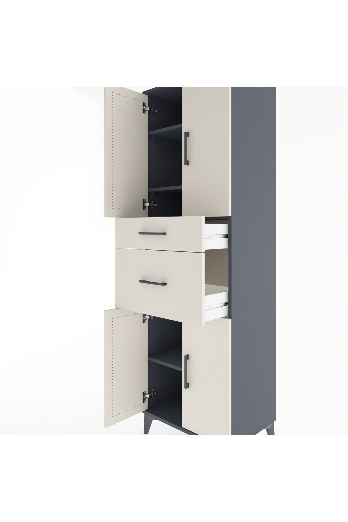 Hyperion Dolap 4 Raflı 2 Çekmeceli 4 Kapaklı 60x44x195 Antrasit-Aytaşı