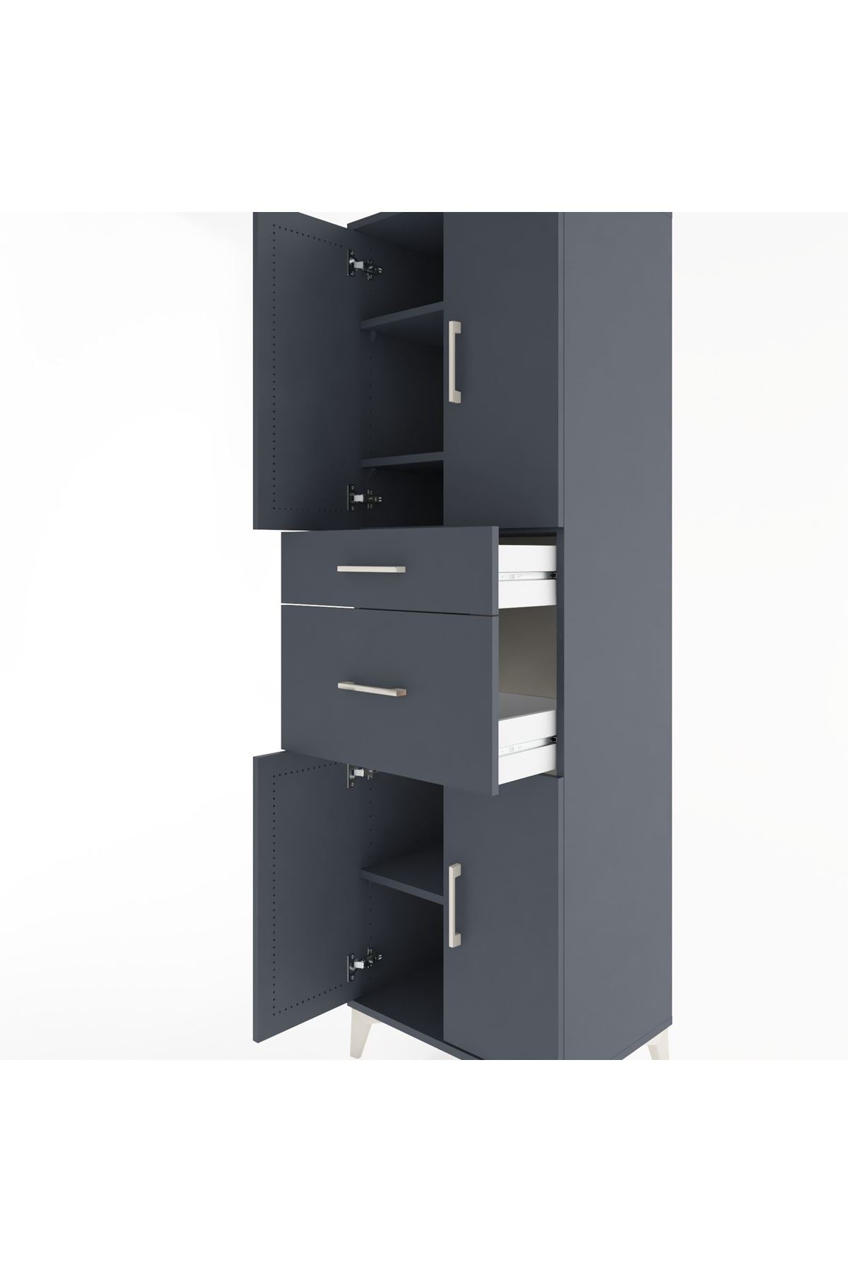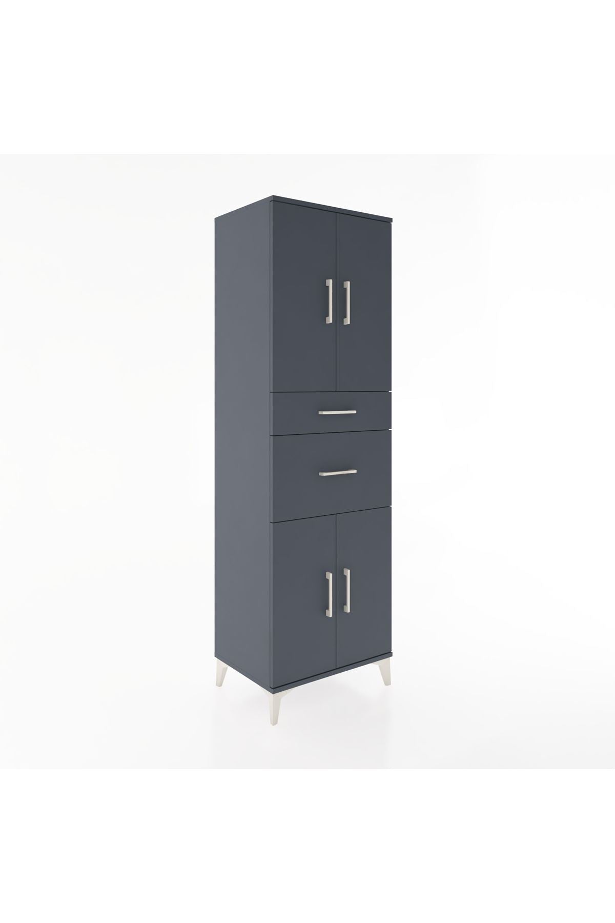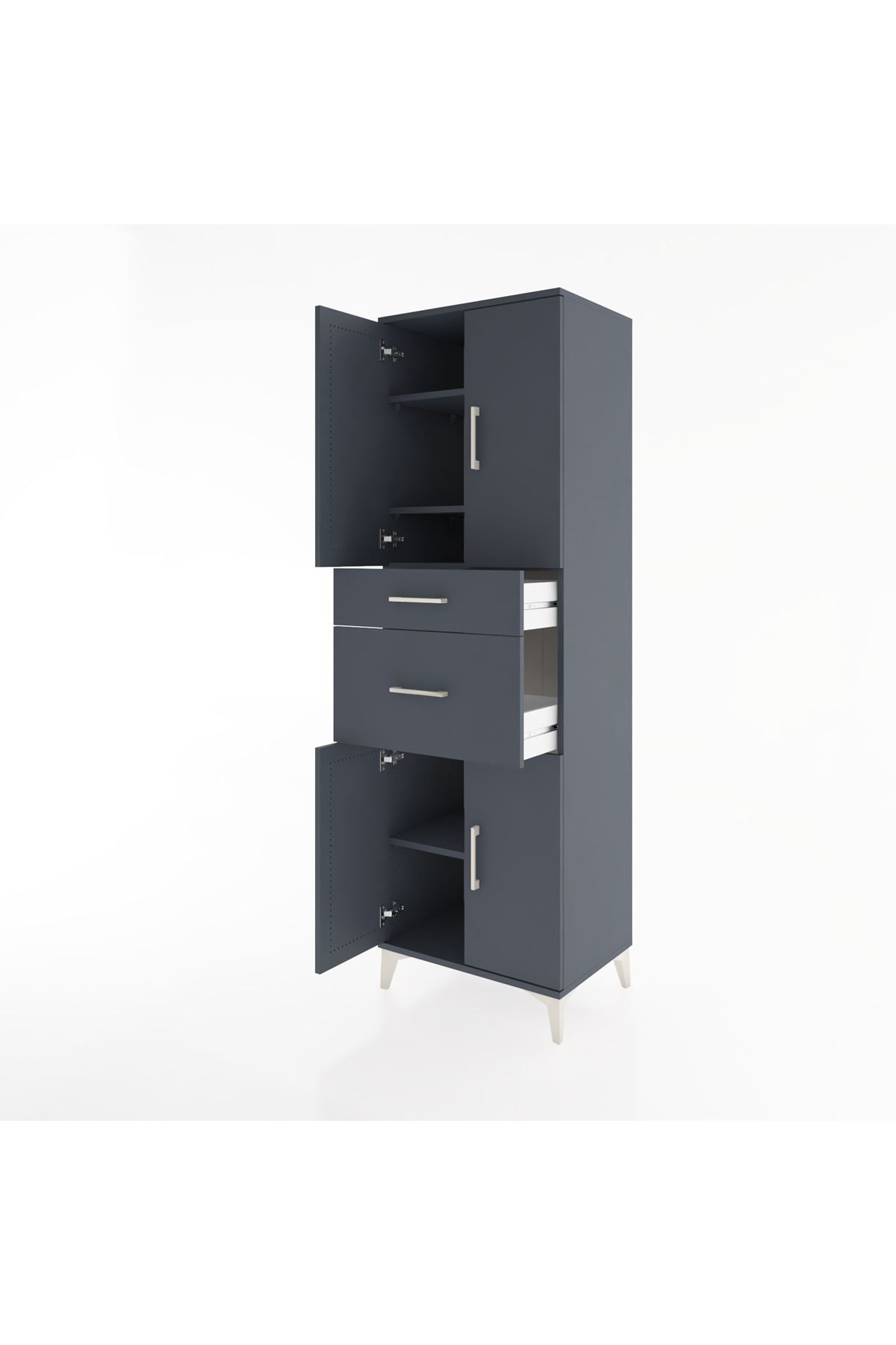 Hyperion Dolap 4 Raflı 2 Çekmeceli 4 Kapaklı 60x44x195 Antrasit-Antrasit
