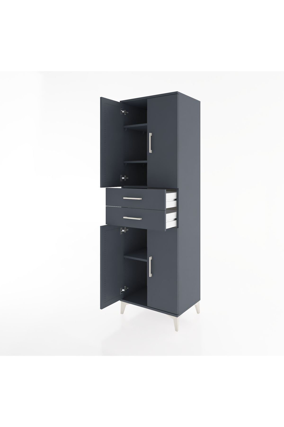 Hyperion Dolap 4 Raflı 2 Çekmeceli 4 Kapaklı 60x44x195 Antrasit-Antrasit
