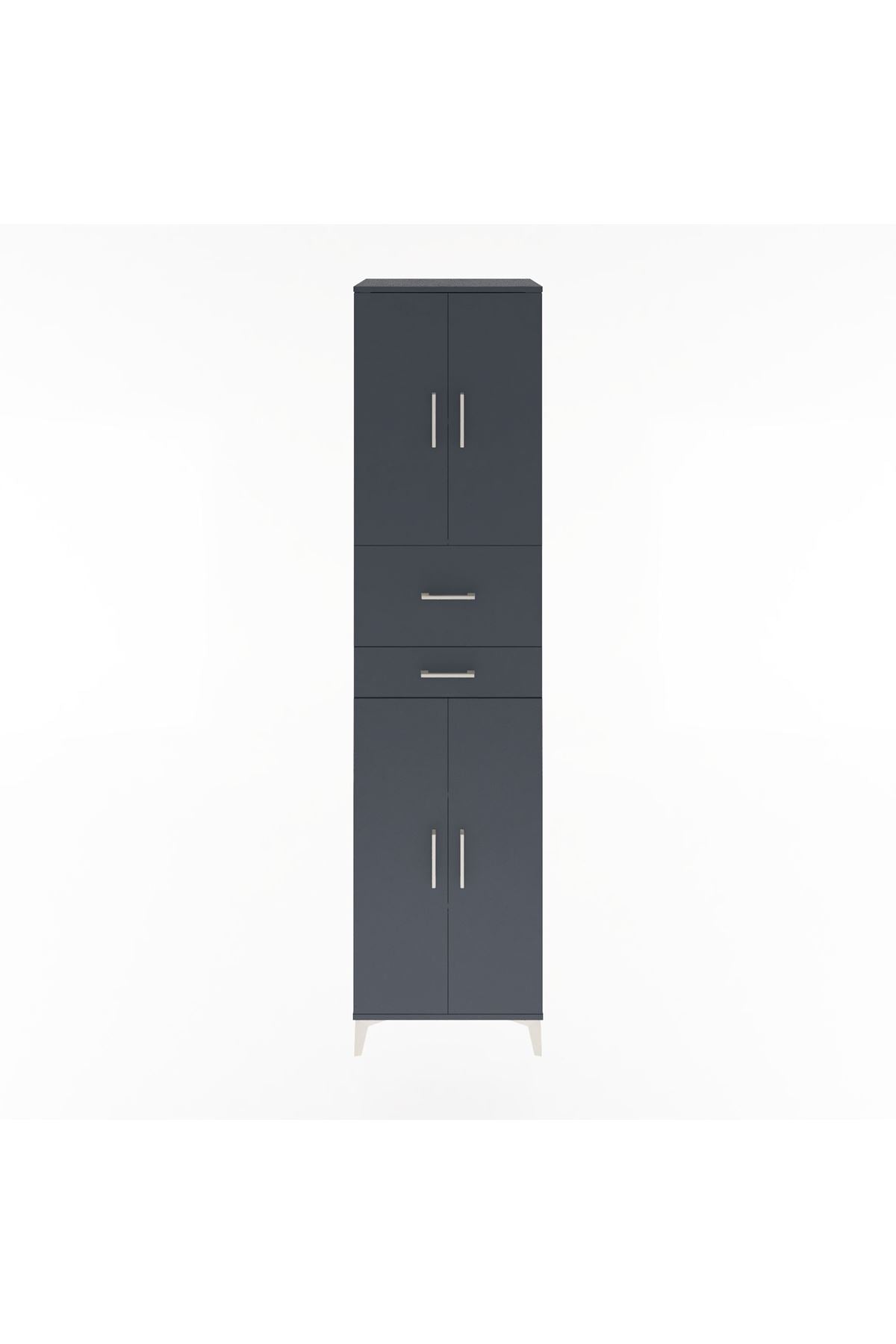 Hyperion Dolap 4 Raflı 2 Çekmeceli 4 Kapaklı 60x44x243 Antrasit-Antrasit