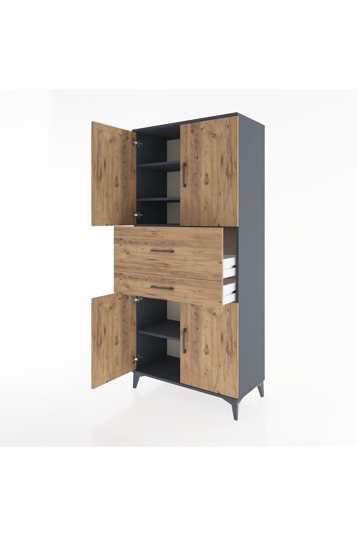 Hyperion Dolap 4 Raflı 2 Çekmeceli 4 Kapaklı 88x44x195 Antrasit-Çam