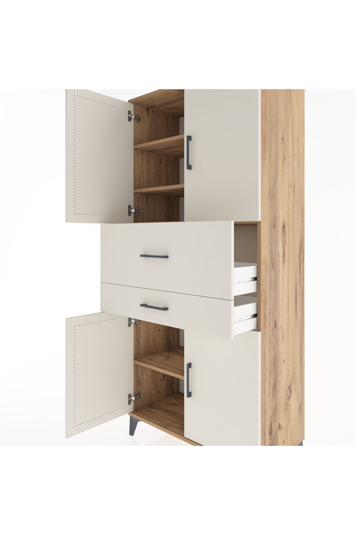 Hyperion Dolap 4 Raflı 2 Çekmeceli 4 Kapaklı 88x44x195 Çam-Aytaşı