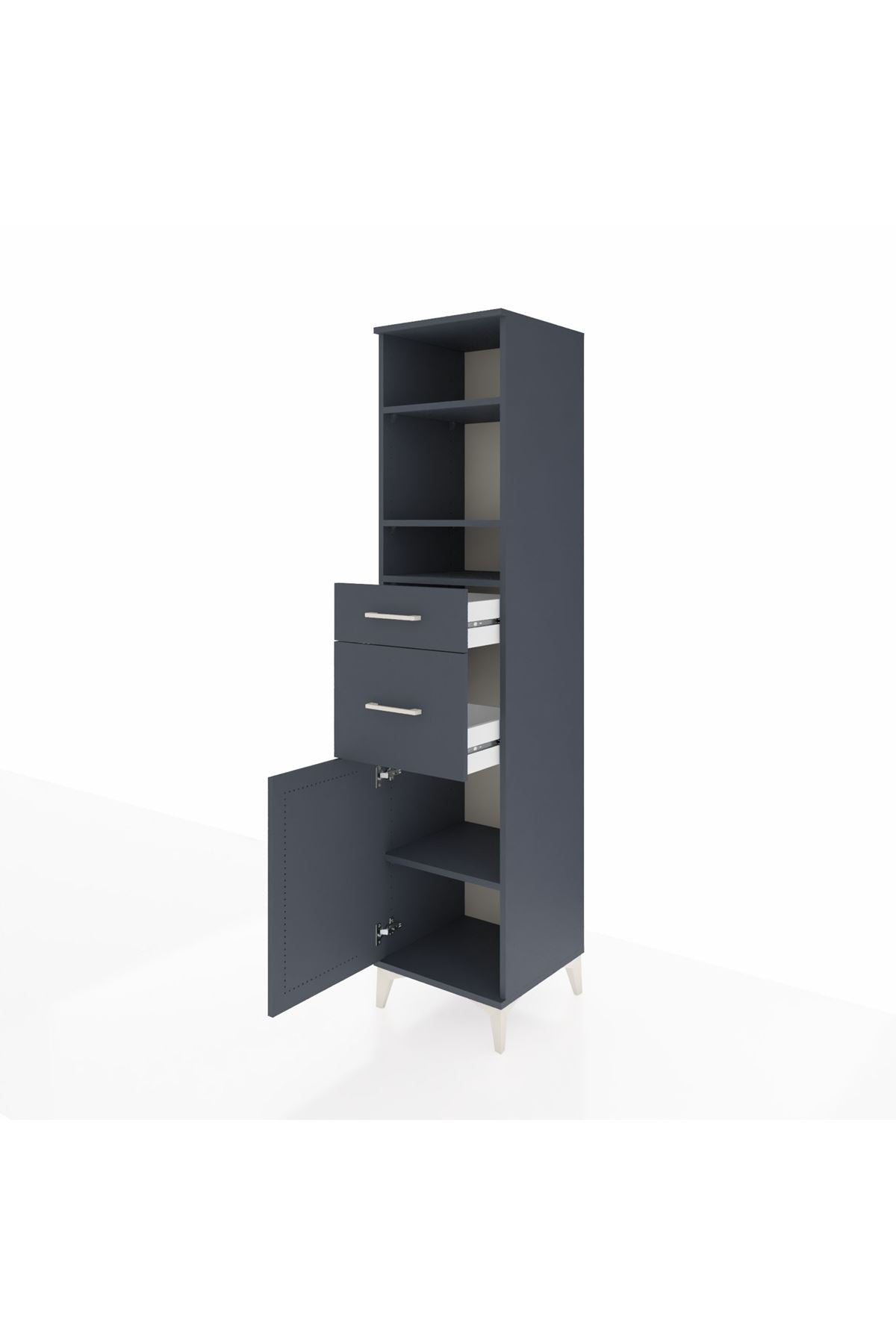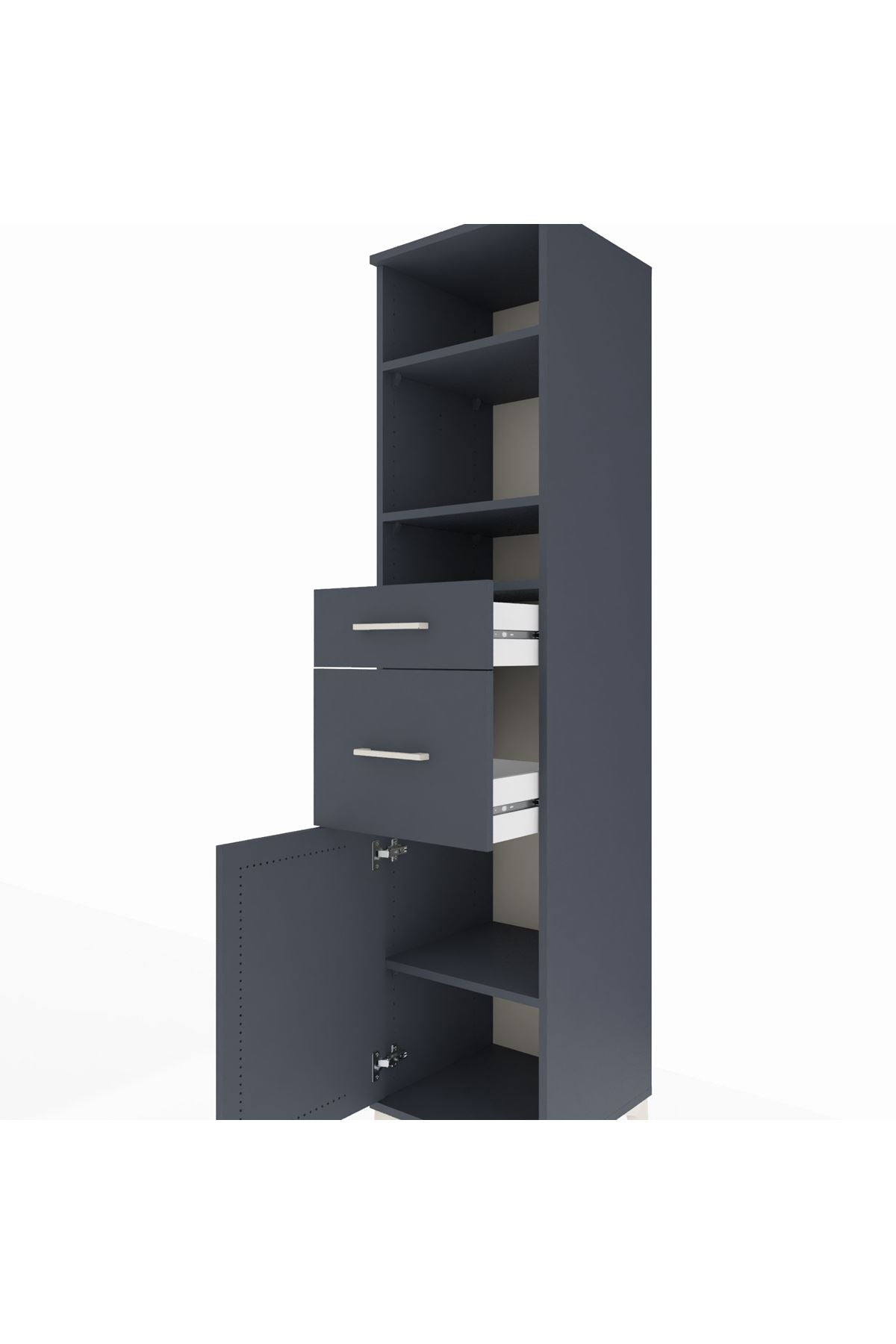 Hyperion Dolap 4 Raflı 2 Çekmeceli Tek Kapaklı 44x44x195 Antrasit-Antrasit