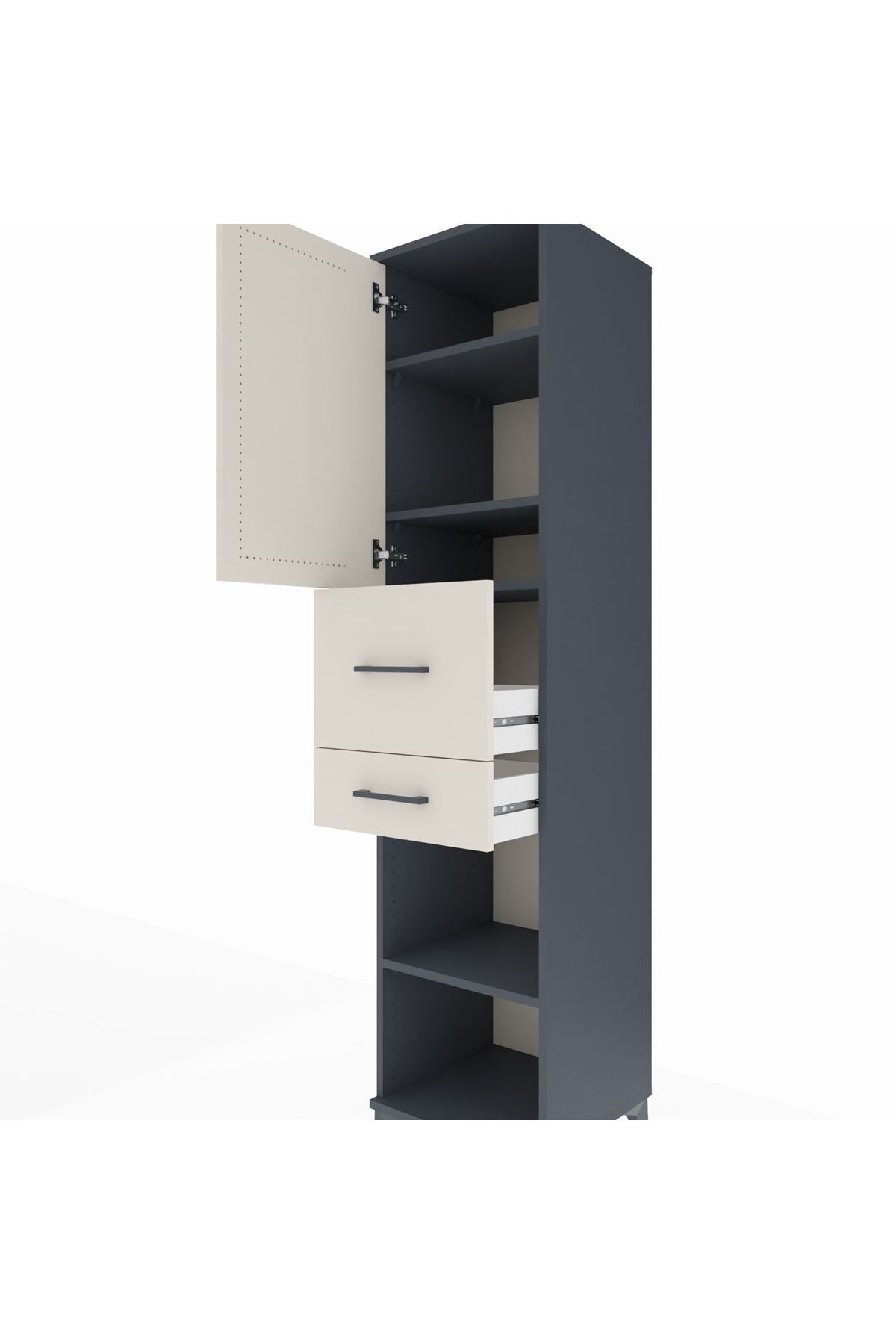 Hyperion Dolap 4 Raflı 2 Çekmeceli Tek Kapaklı 44x44x195 Antrasit-Aytaşı