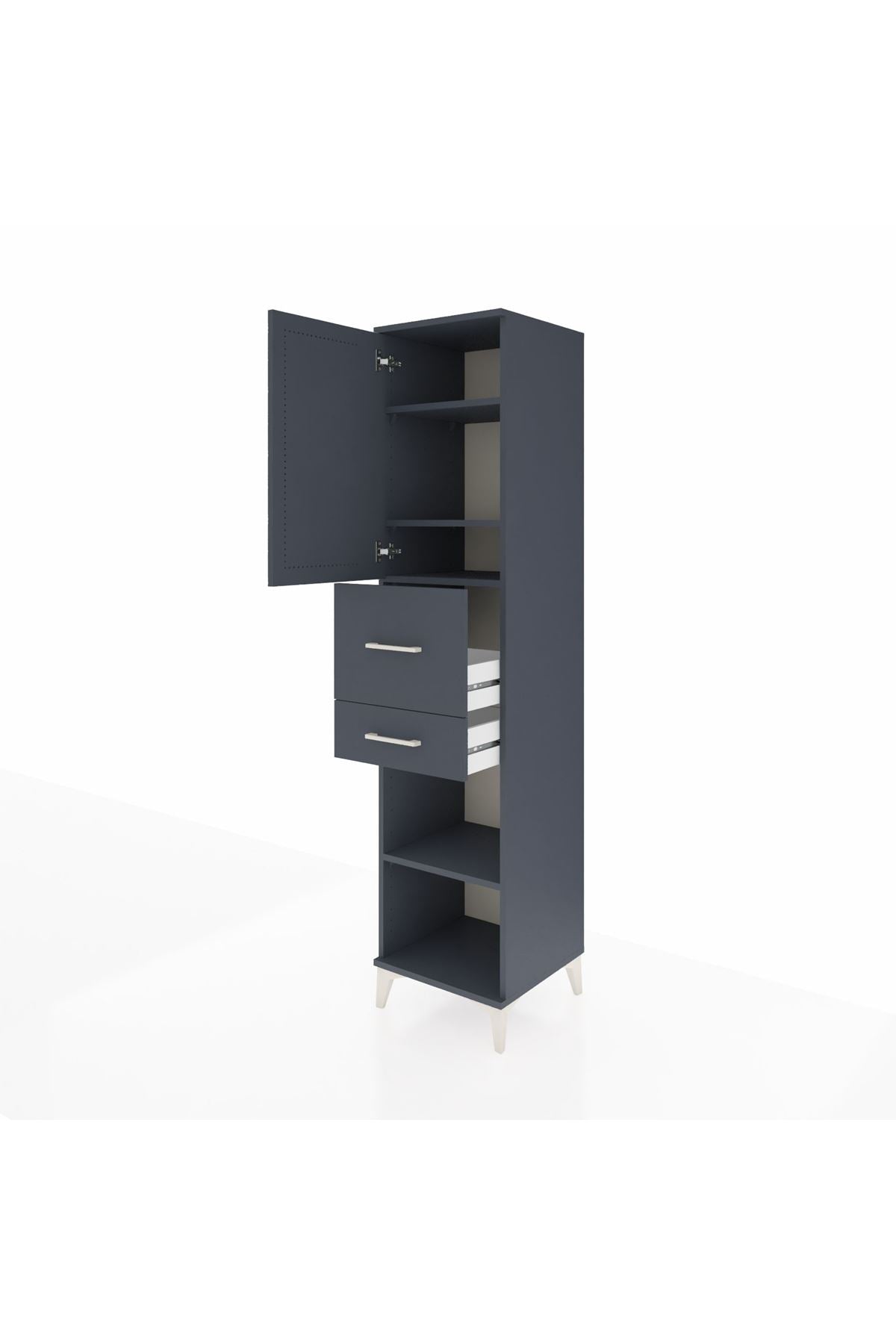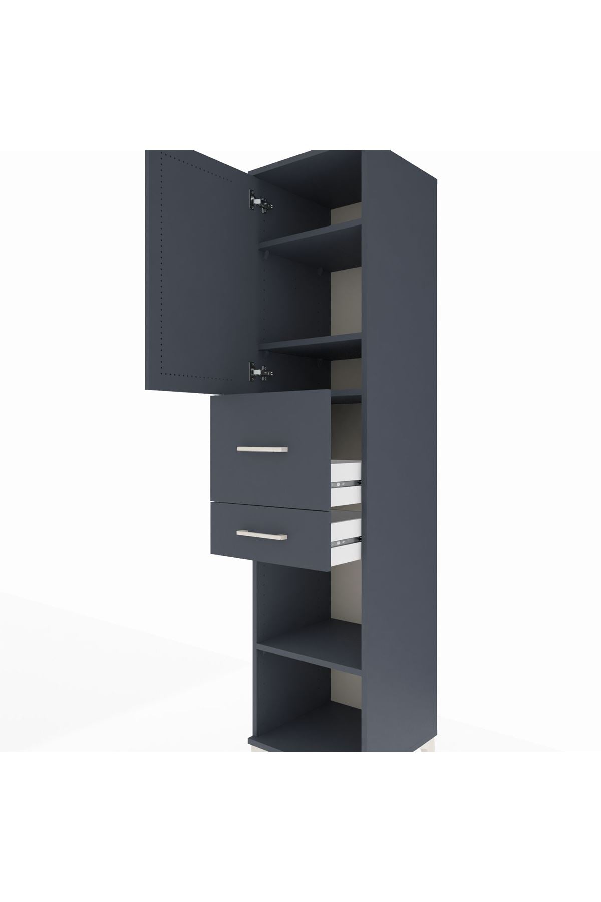 Hyperion Dolap 4 Raflı 2 Çekmeceli Tek Kapaklı 44x44x195 Antrasit-Antrasit