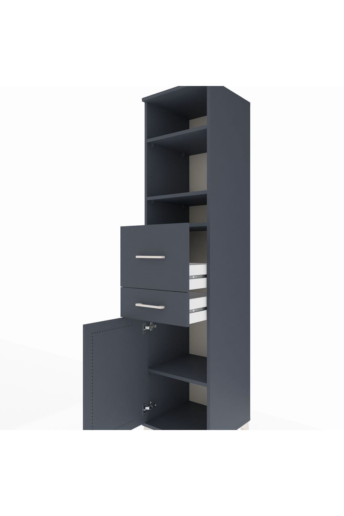 Hyperion Dolap 4 Raflı 2 Çekmeceli Tek Kapaklı 44x44x195 Antrasit-Antrasit