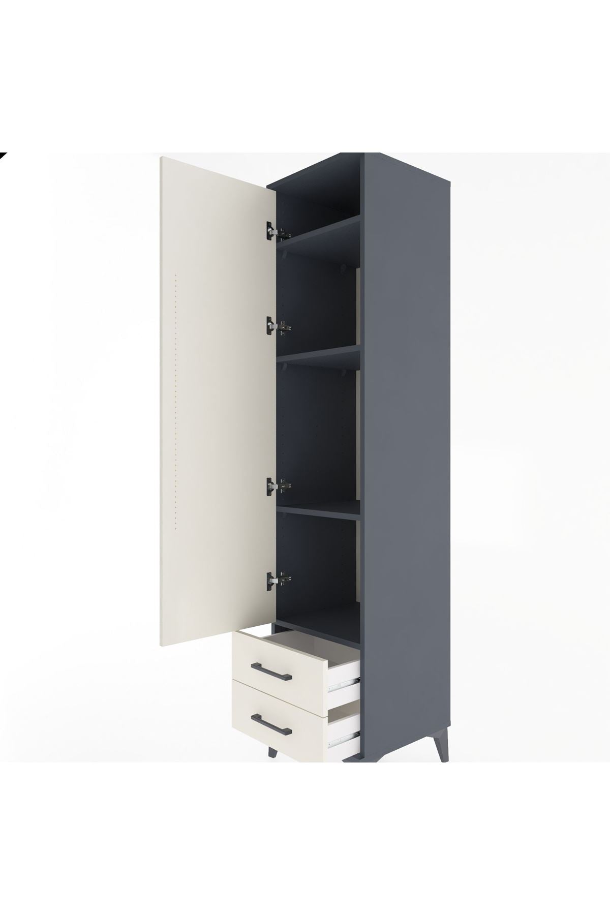 Hyperion Dolap 4 Raflı 2 Çekmeceli Tek Kapaklı 44x44x195 Antrasit-Aytaşı
