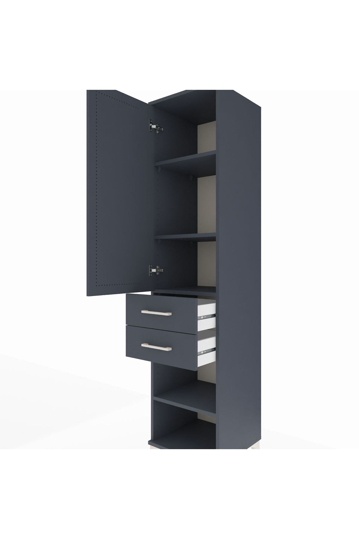 Hyperion Dolap 4 Raflı 2 Çekmeceli Tek Kapaklı 44x44x195 Antrasit-Antrasit
