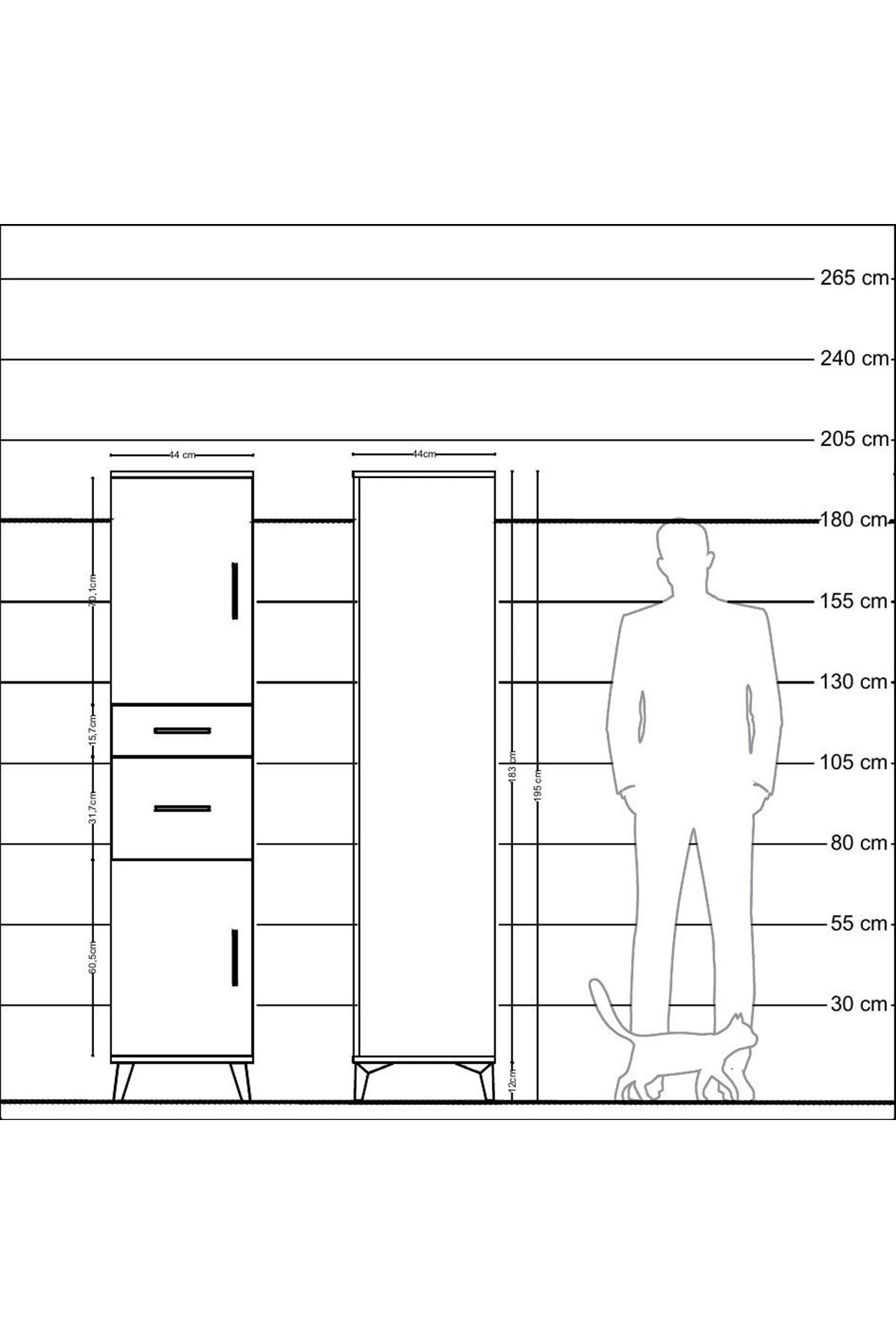 Hyperion Dolap 4 Raflı 2 Çekmeceli Tek Kapaklı 44x44x195 Aytaşı-Çam