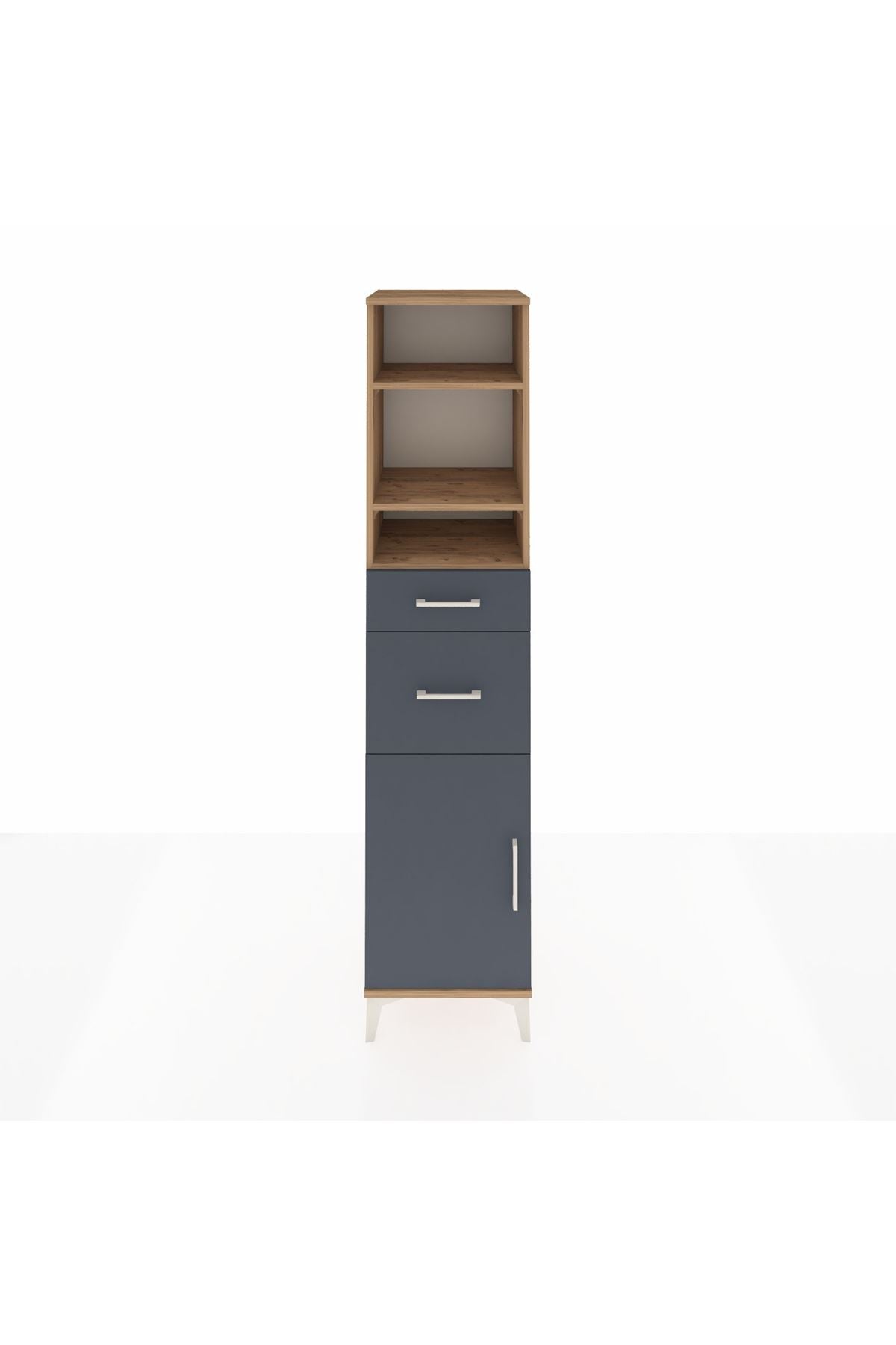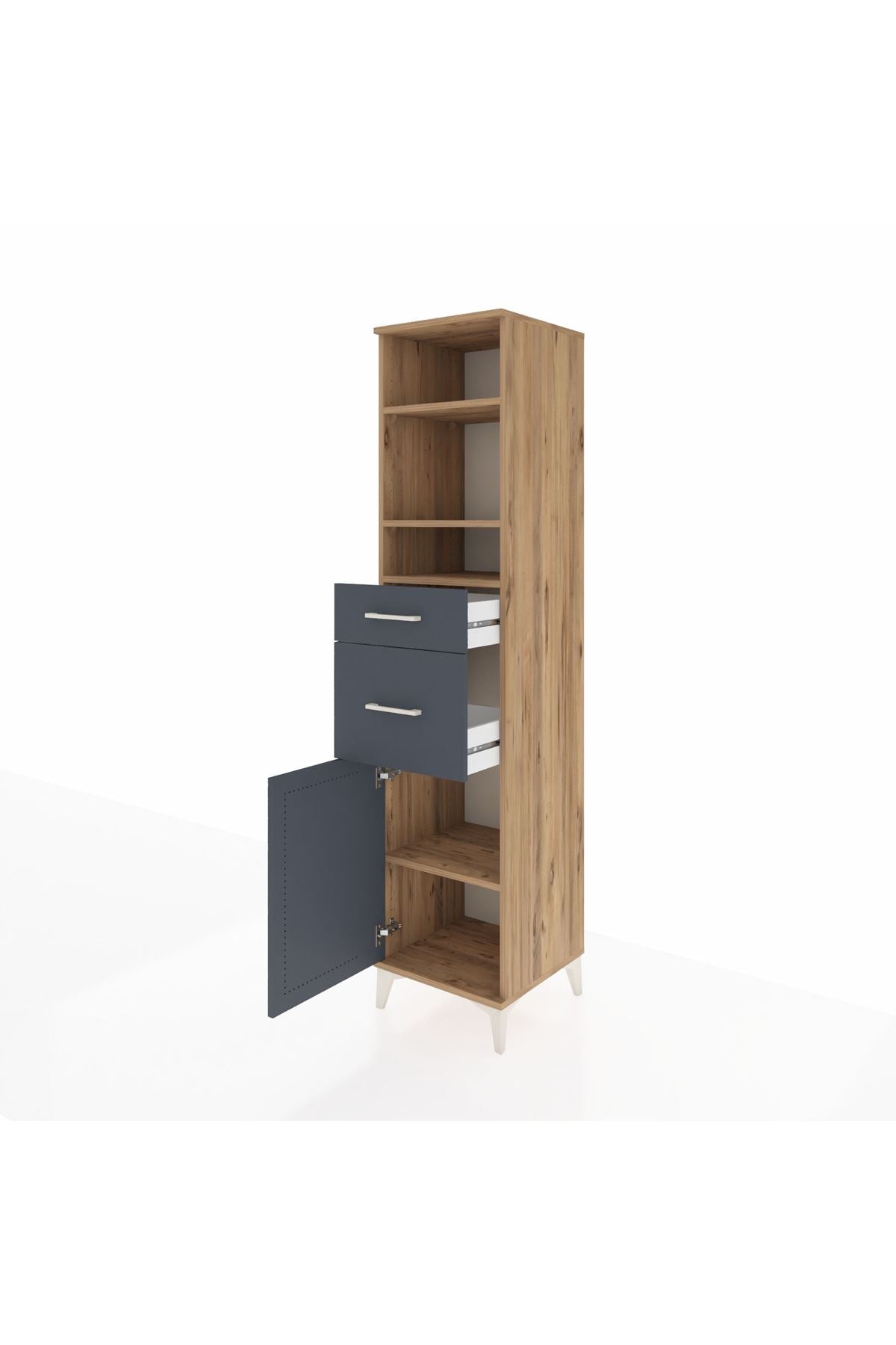 Hyperion Dolap 4 Raflı 2 Çekmeceli Tek Kapaklı 44x44x195 Çam-Antrasit