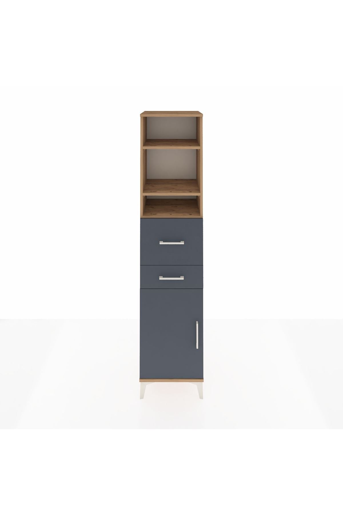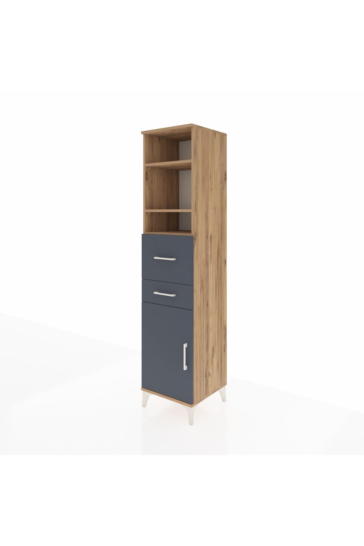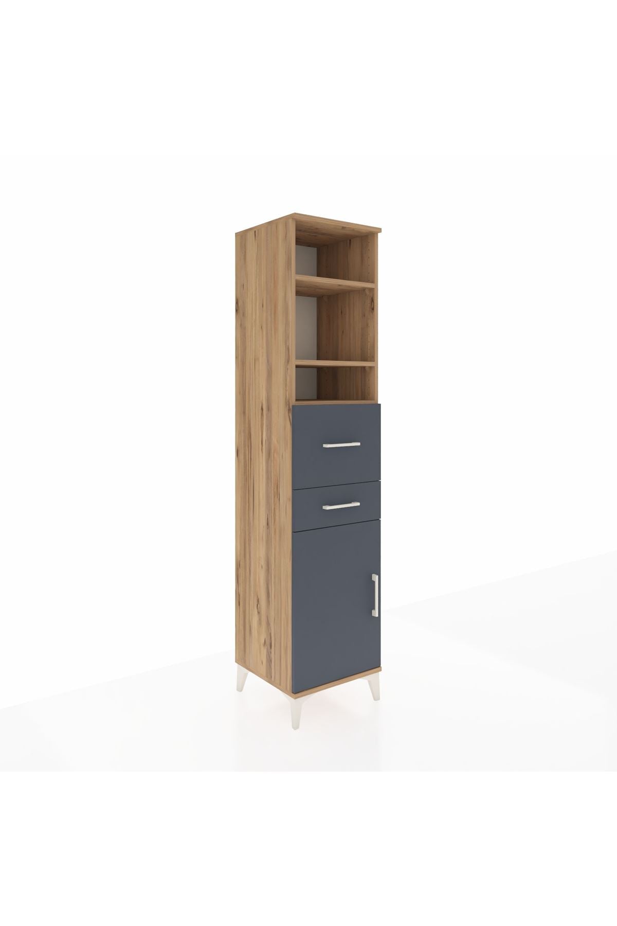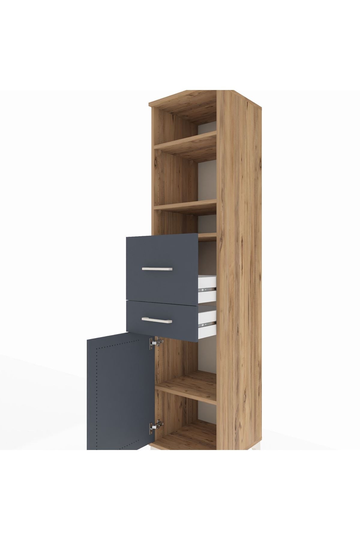 Hyperion Dolap 4 Raflı 2 Çekmeceli Tek Kapaklı 44x44x195 Çam-Antrasit