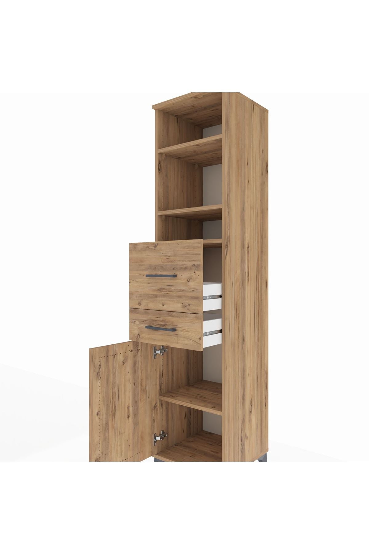 Hyperion Dolap 4 Raflı 2 Çekmeceli Tek Kapaklı 44x44x195 Çam-Çam