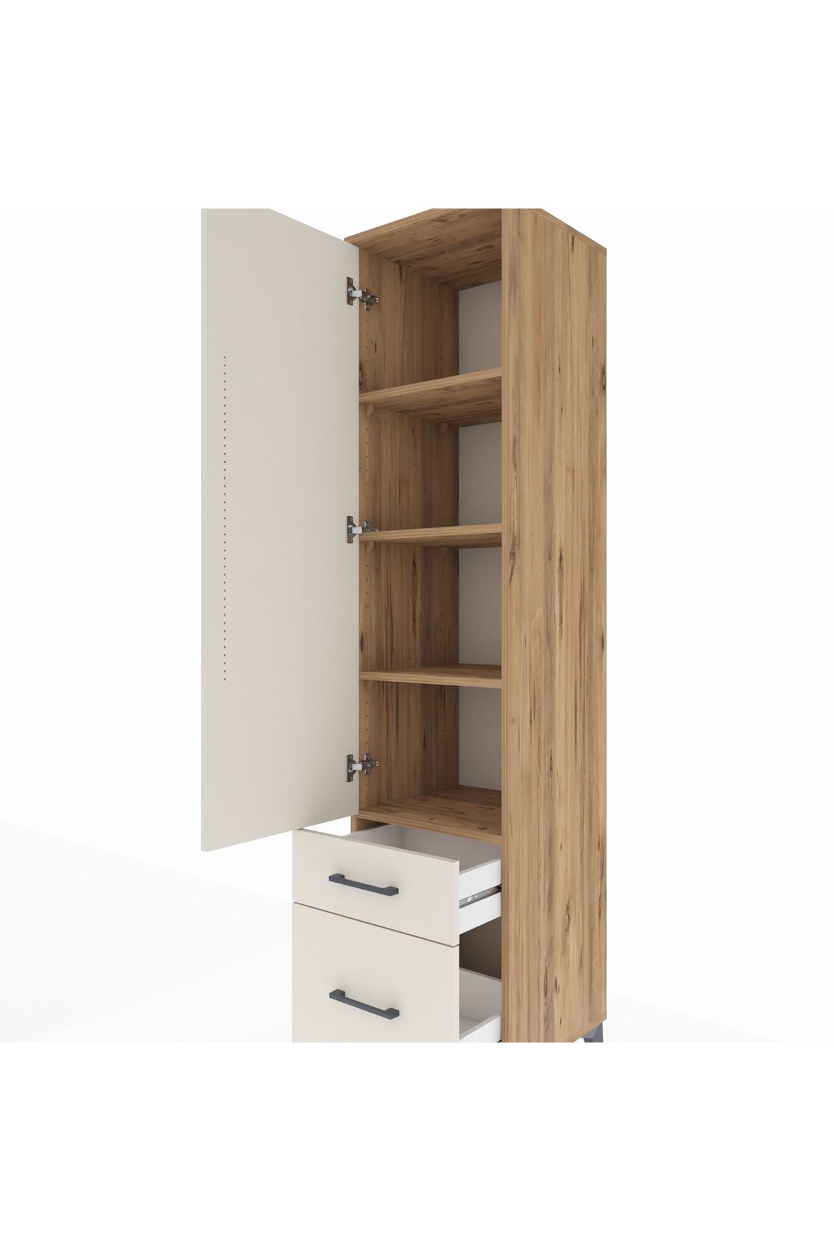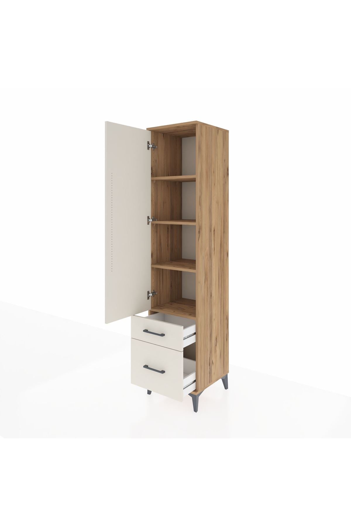 Hyperion Dolap 4 Raflı 2 Çekmeceli Tek Kapaklı 44x44x195 Çam-Aytaşı