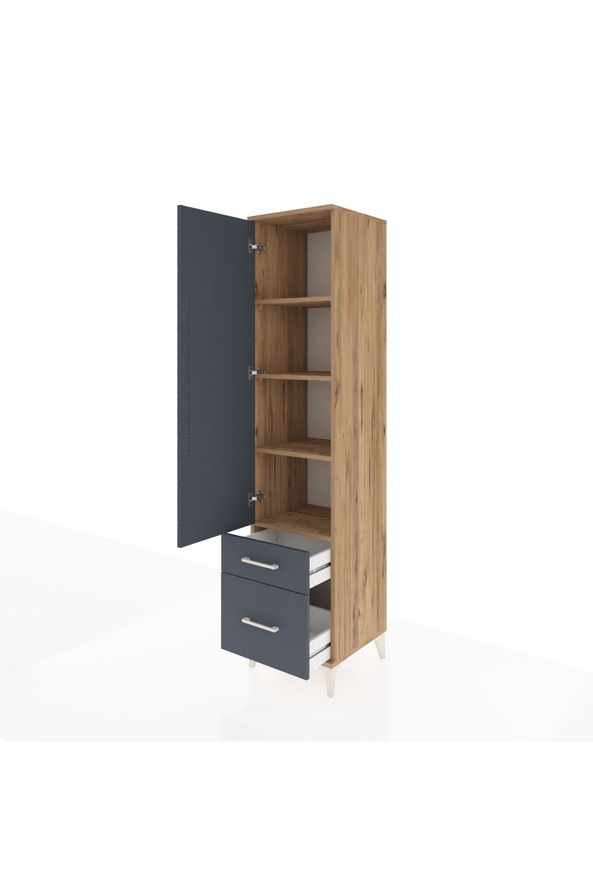 Hyperion Dolap 4 Raflı 2 Çekmeceli Tek Kapaklı 44x44x195 Çam-Antrasit
