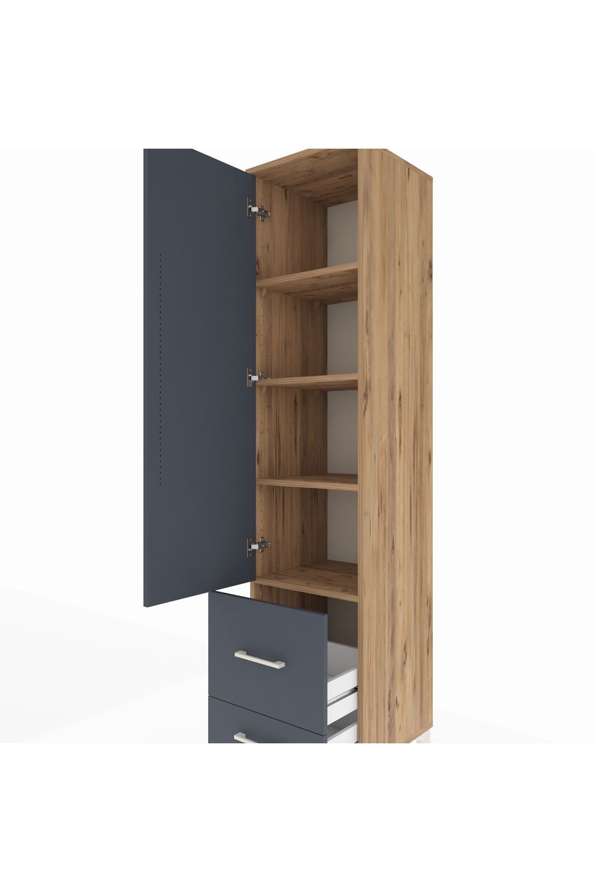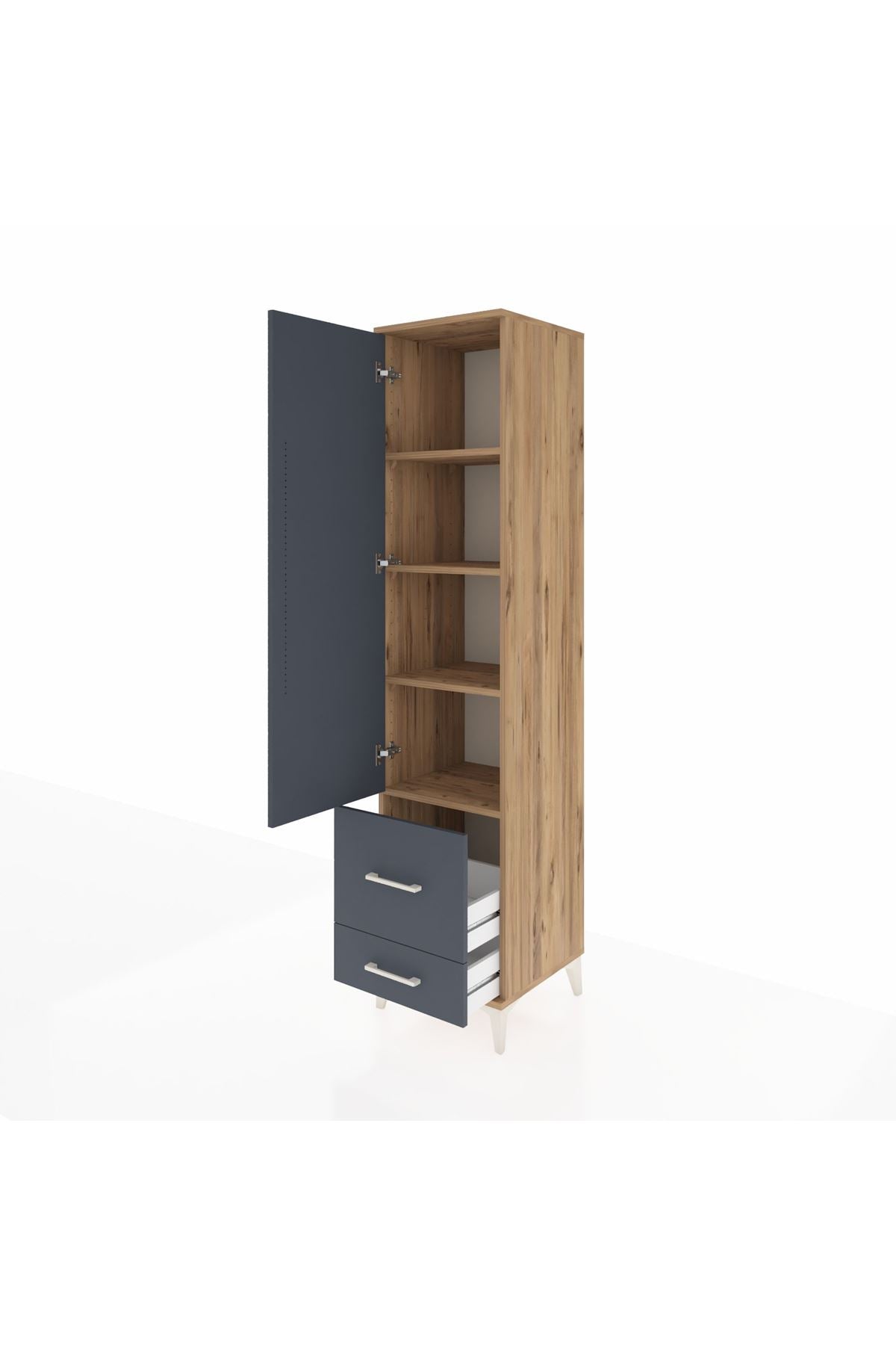 Hyperion Dolap 4 Raflı 2 Çekmeceli Tek Kapaklı 44x44x195 Çam-Antrasit