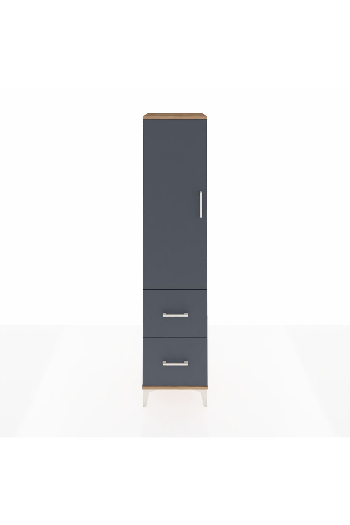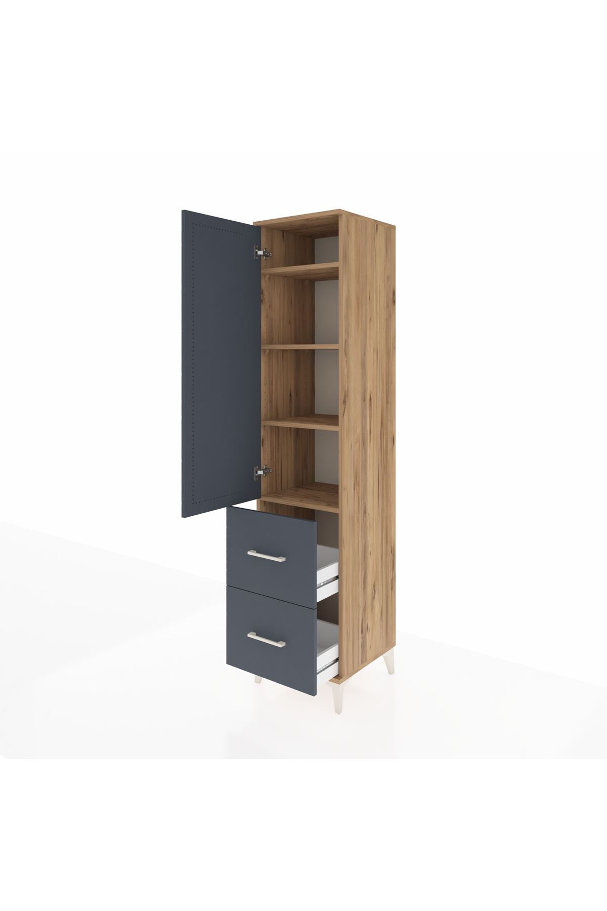 Hyperion Dolap 4 Raflı 2 Çekmeceli Tek Kapaklı 44x44x195 Çam-Antrasit