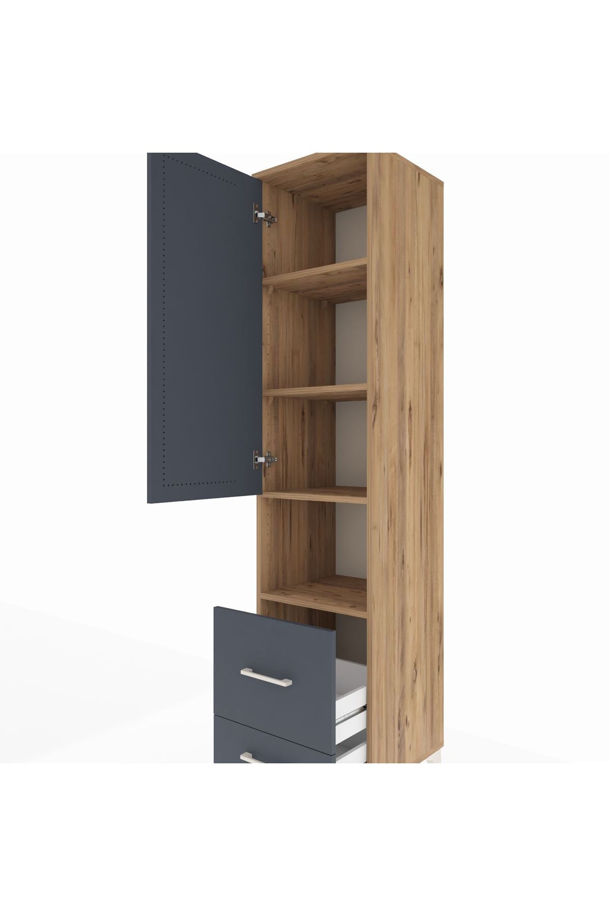Hyperion Dolap 4 Raflı 2 Çekmeceli Tek Kapaklı 44x44x195 Çam-Antrasit