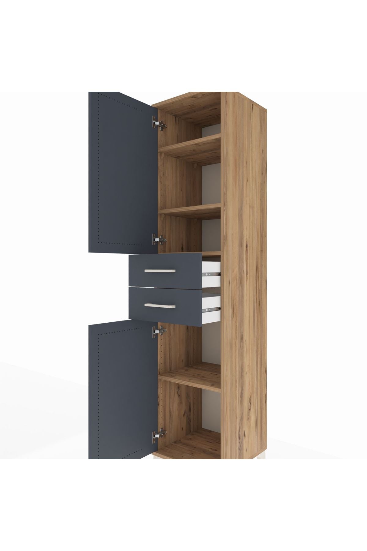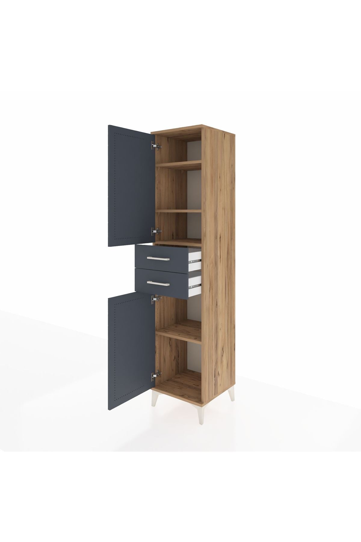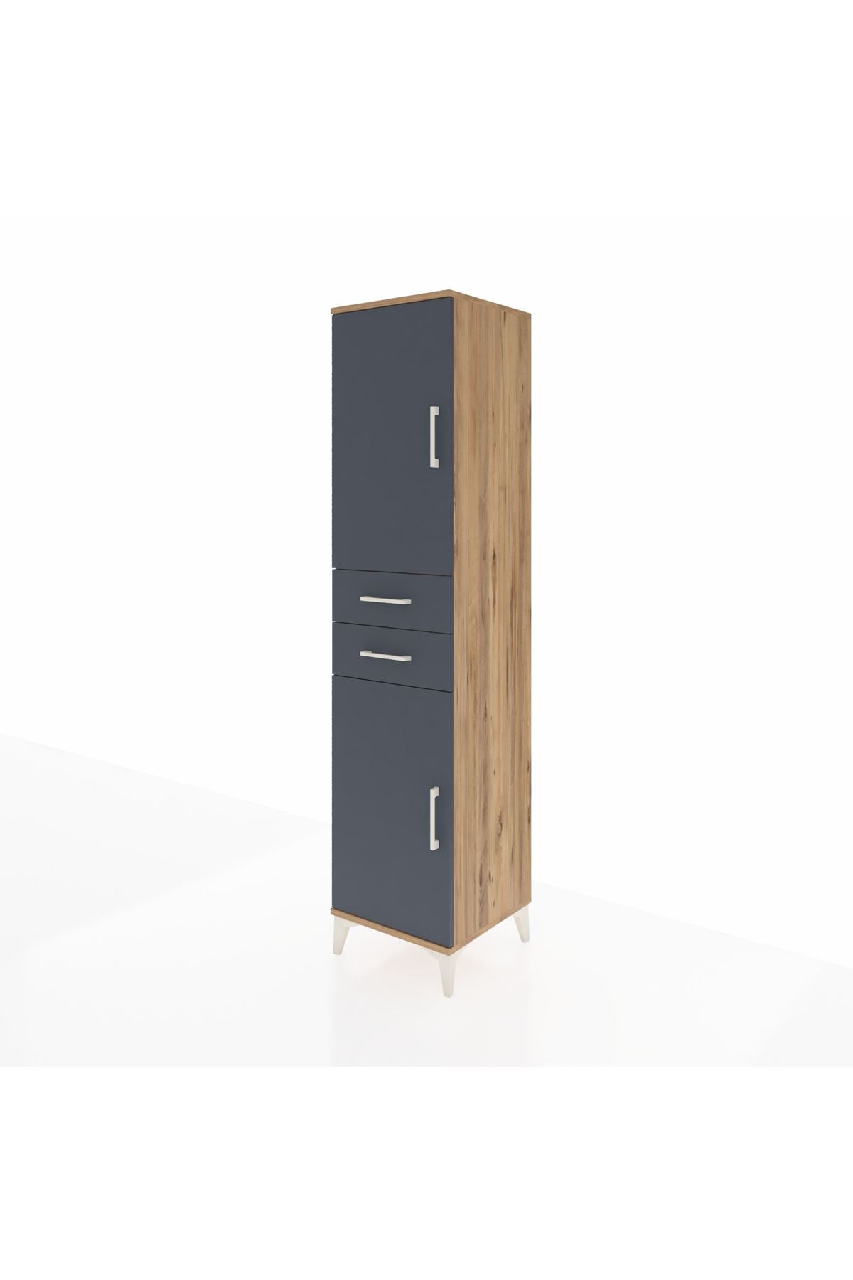 Hyperion Dolap 4 Raflı 2 Çekmeceli Tek Kapaklı 44x44x195 Çam-Antrasit