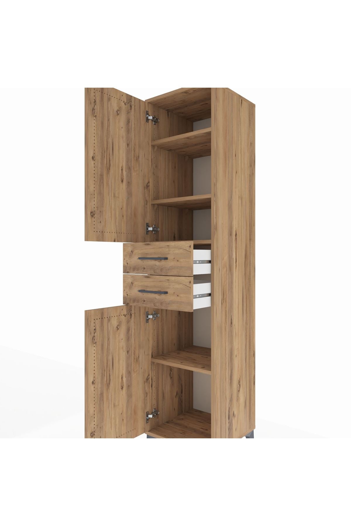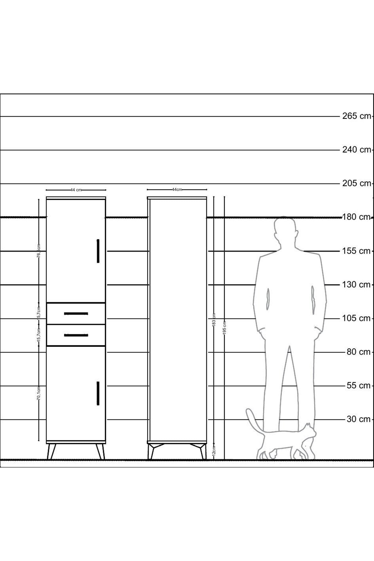 Hyperion Dolap 4 Raflı 2 Çekmeceli Tek Kapaklı 44x44x195 Çam-Çam