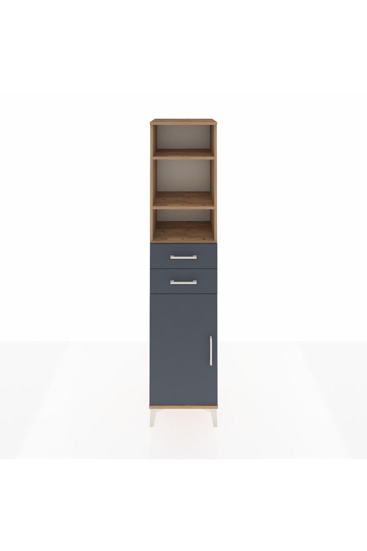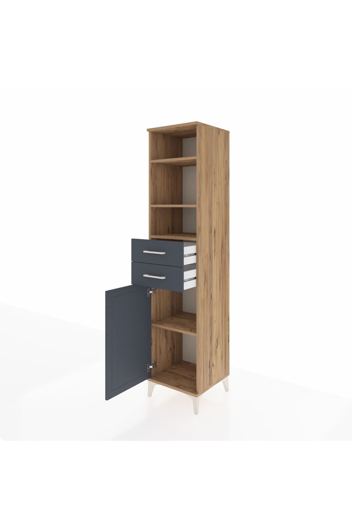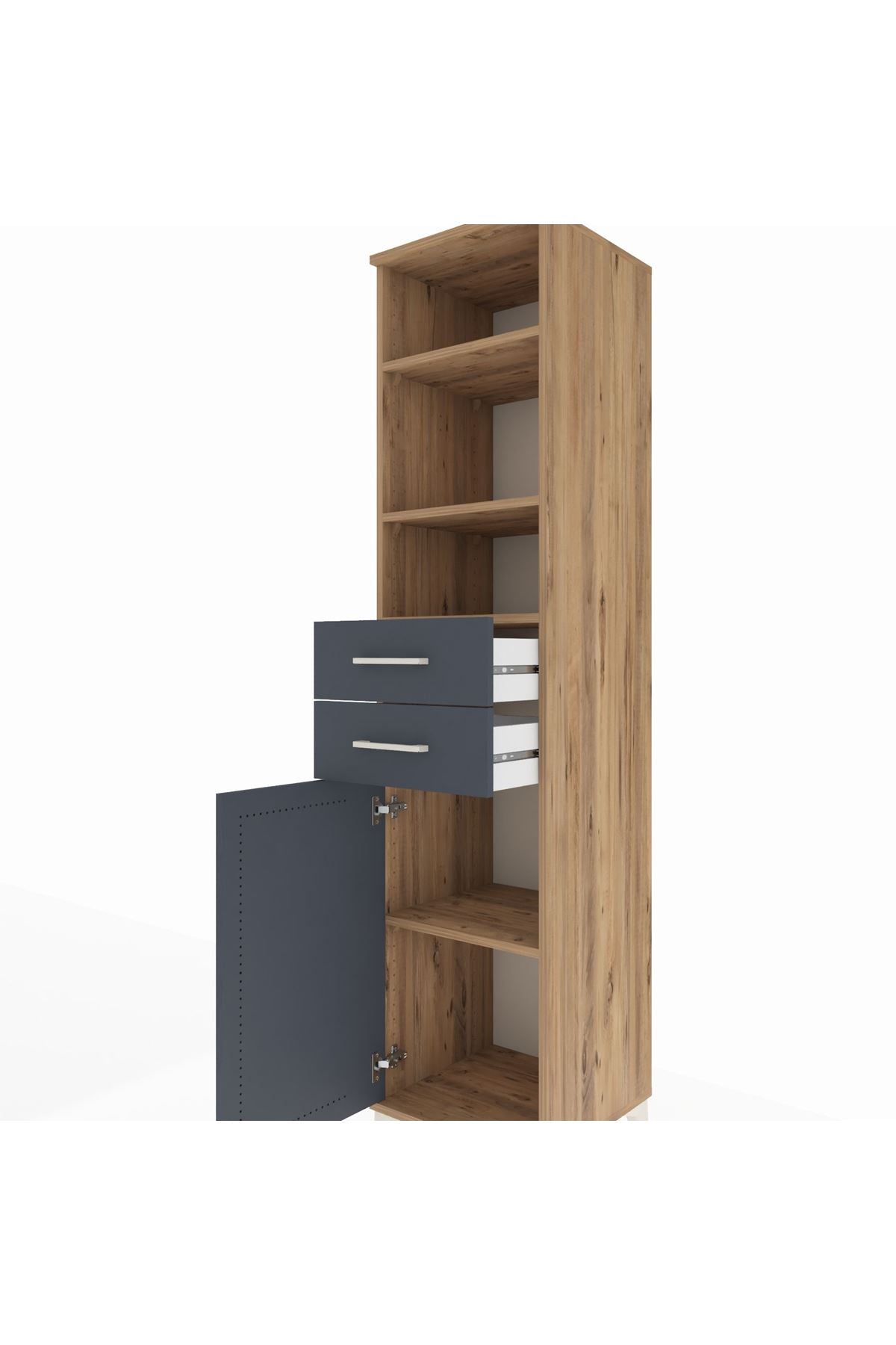 Hyperion Dolap 4 Raflı 2 Çekmeceli Tek Kapaklı 44x44x195 Çam-Antrasit