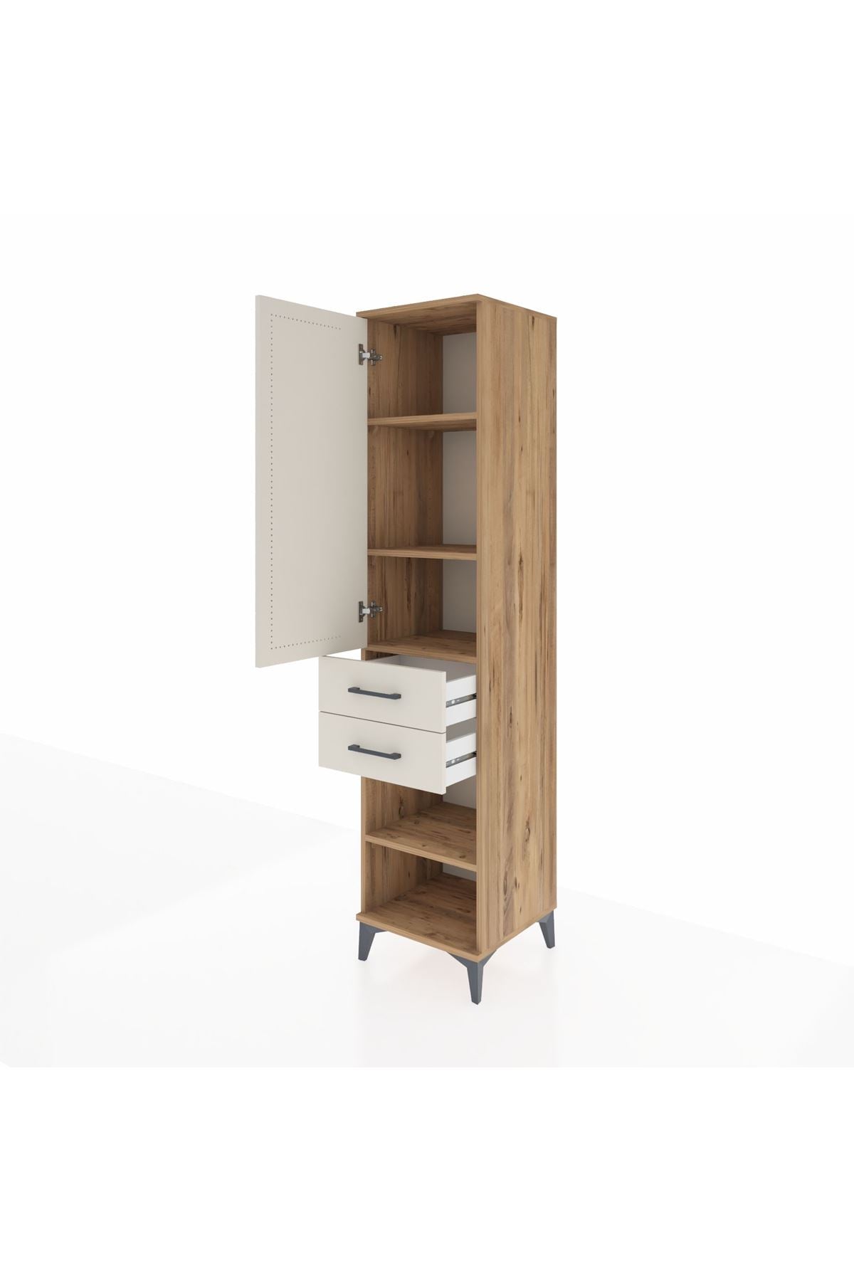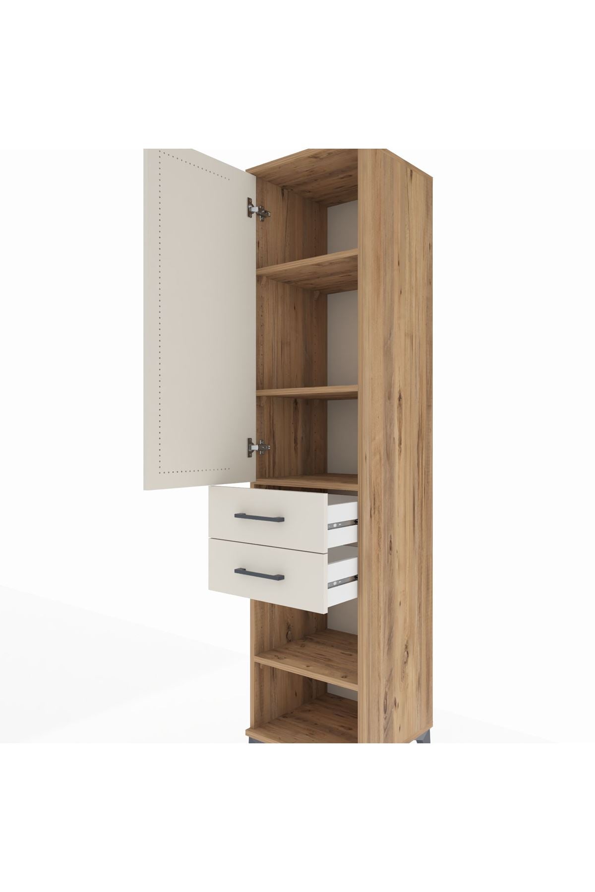 Hyperion Dolap 4 Raflı 2 Çekmeceli Tek Kapaklı 44x44x195 Çam-Aytaşı