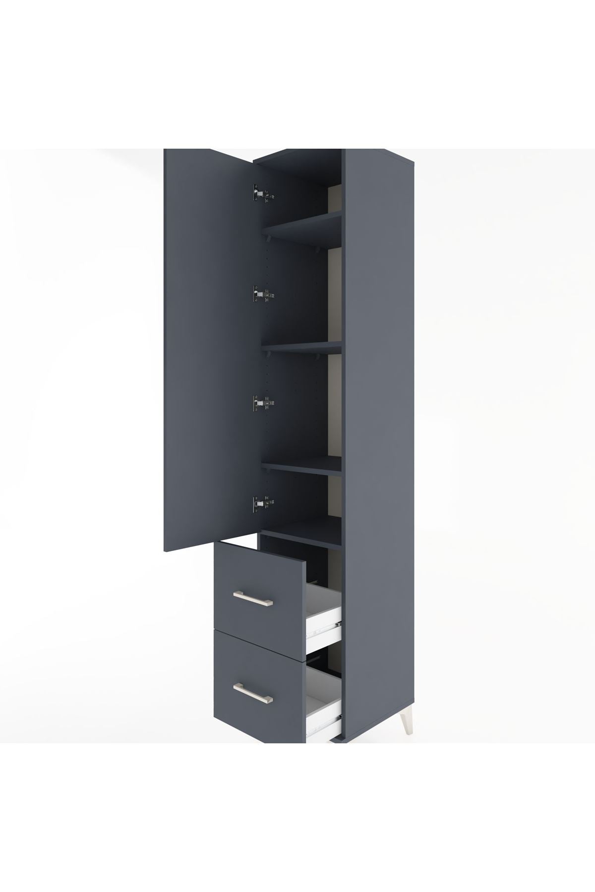 Hyperion Dolap 4 Raflı 2 Çekmeceli Tek Kapaklı 44x44x221 Antrasit-Antrasit