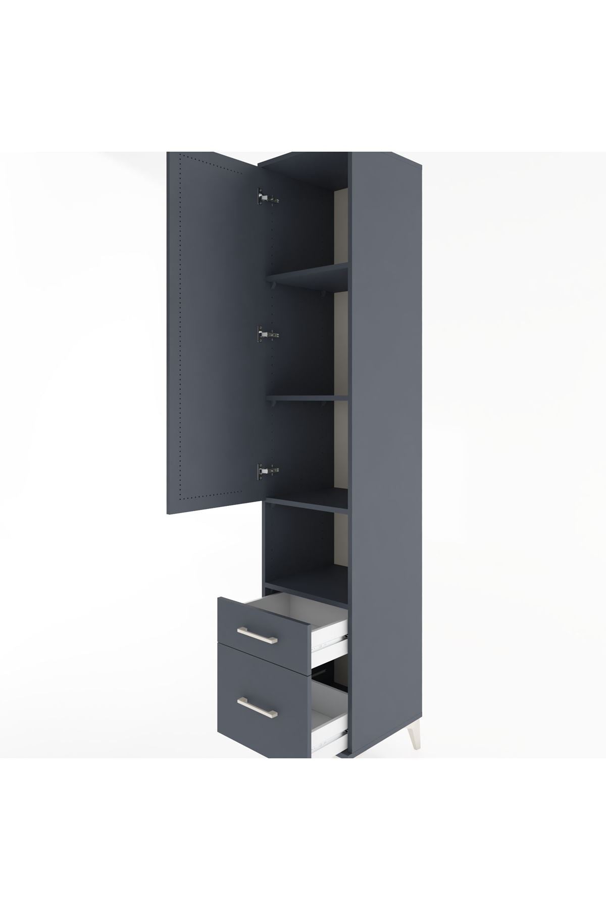 Hyperion Dolap 4 Raflı 2 Çekmeceli Tek Kapaklı 44x44x221 Antrasit-Antrasit