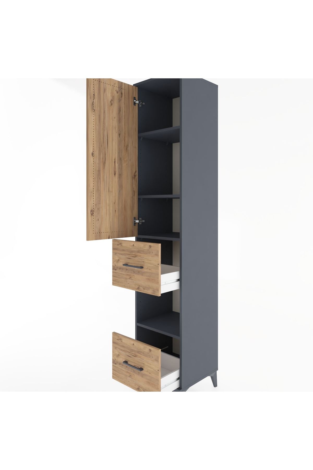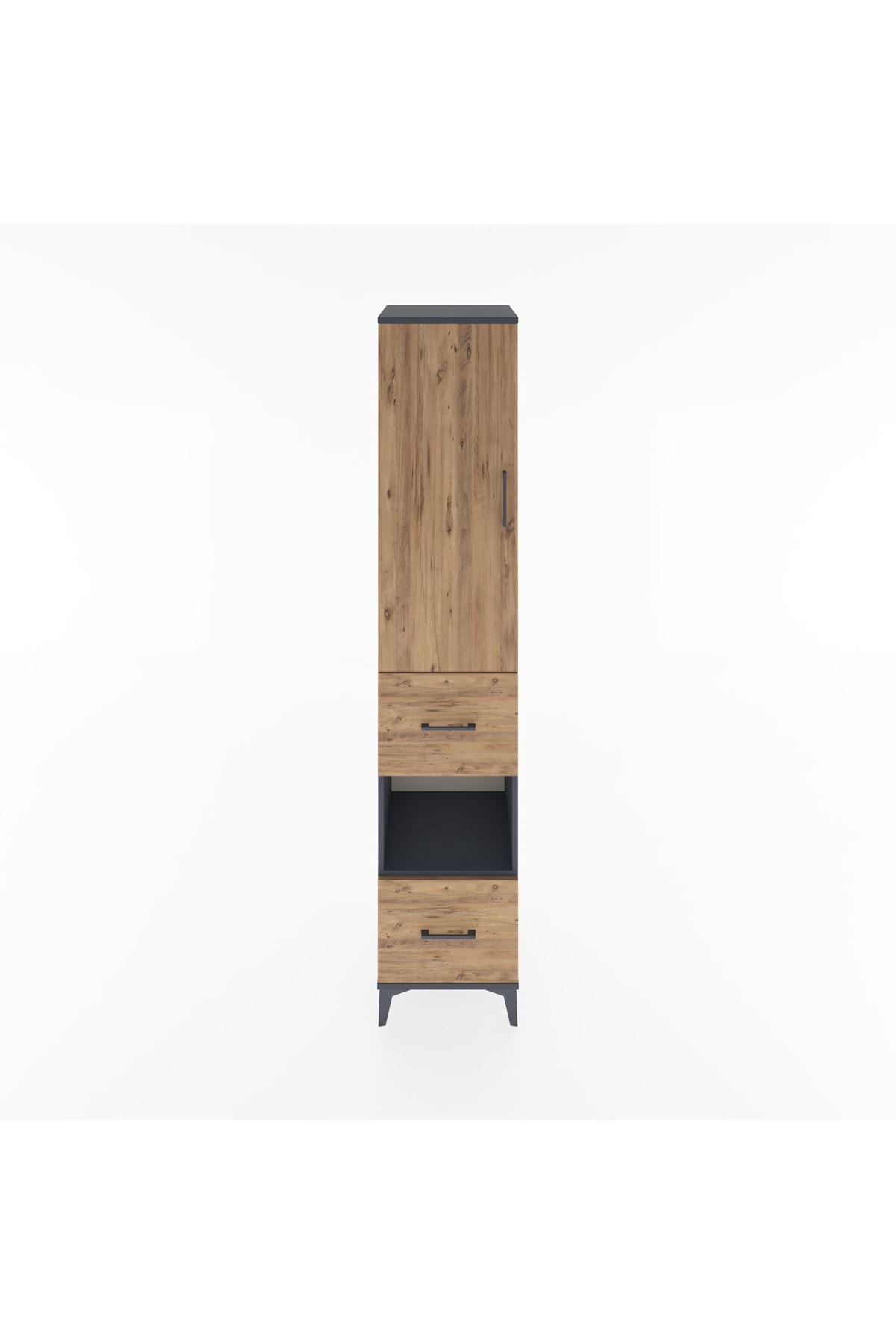 Hyperion Dolap 4 Raflı 2 Çekmeceli Tek Kapaklı 44x44x221 Antrasit-Çam