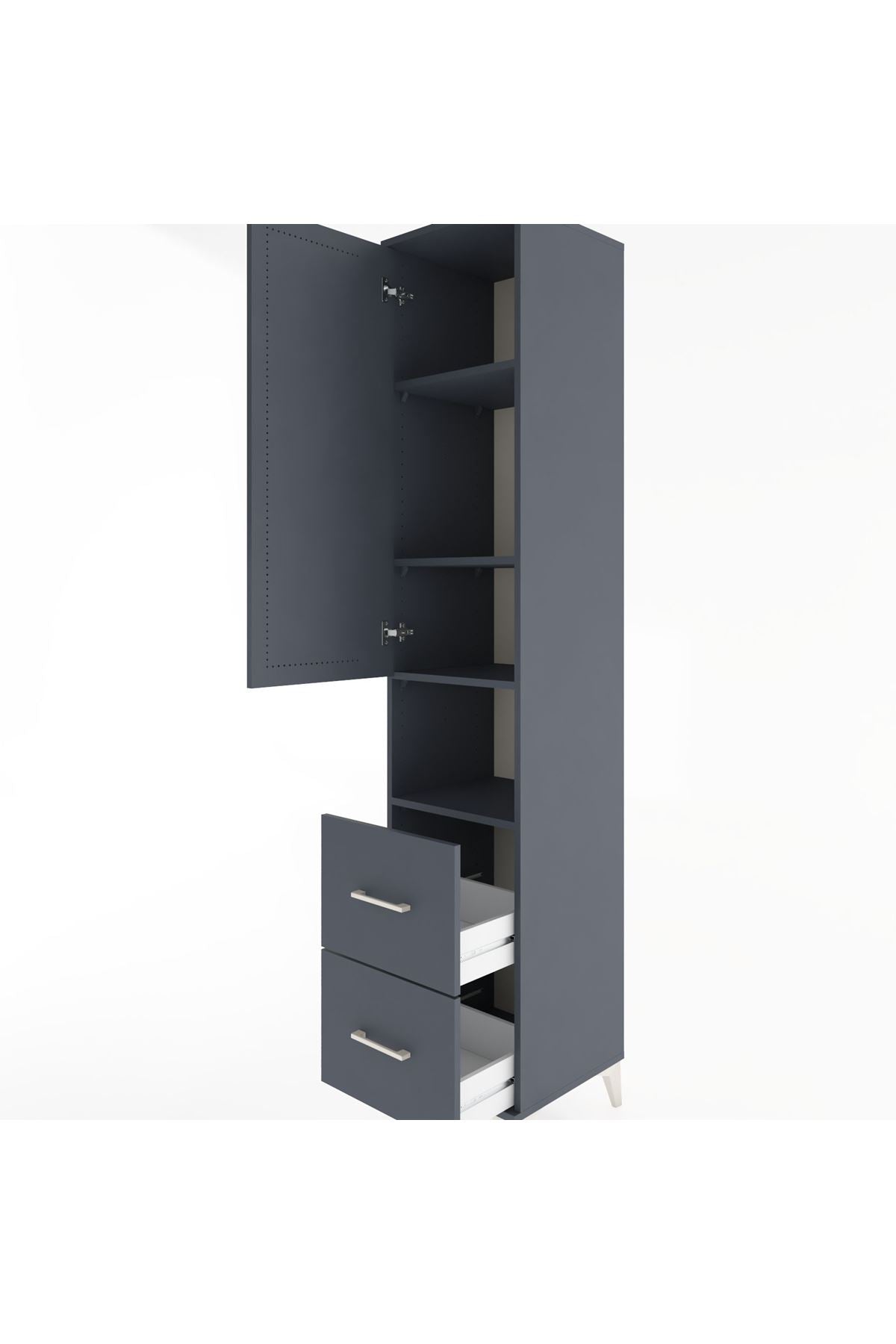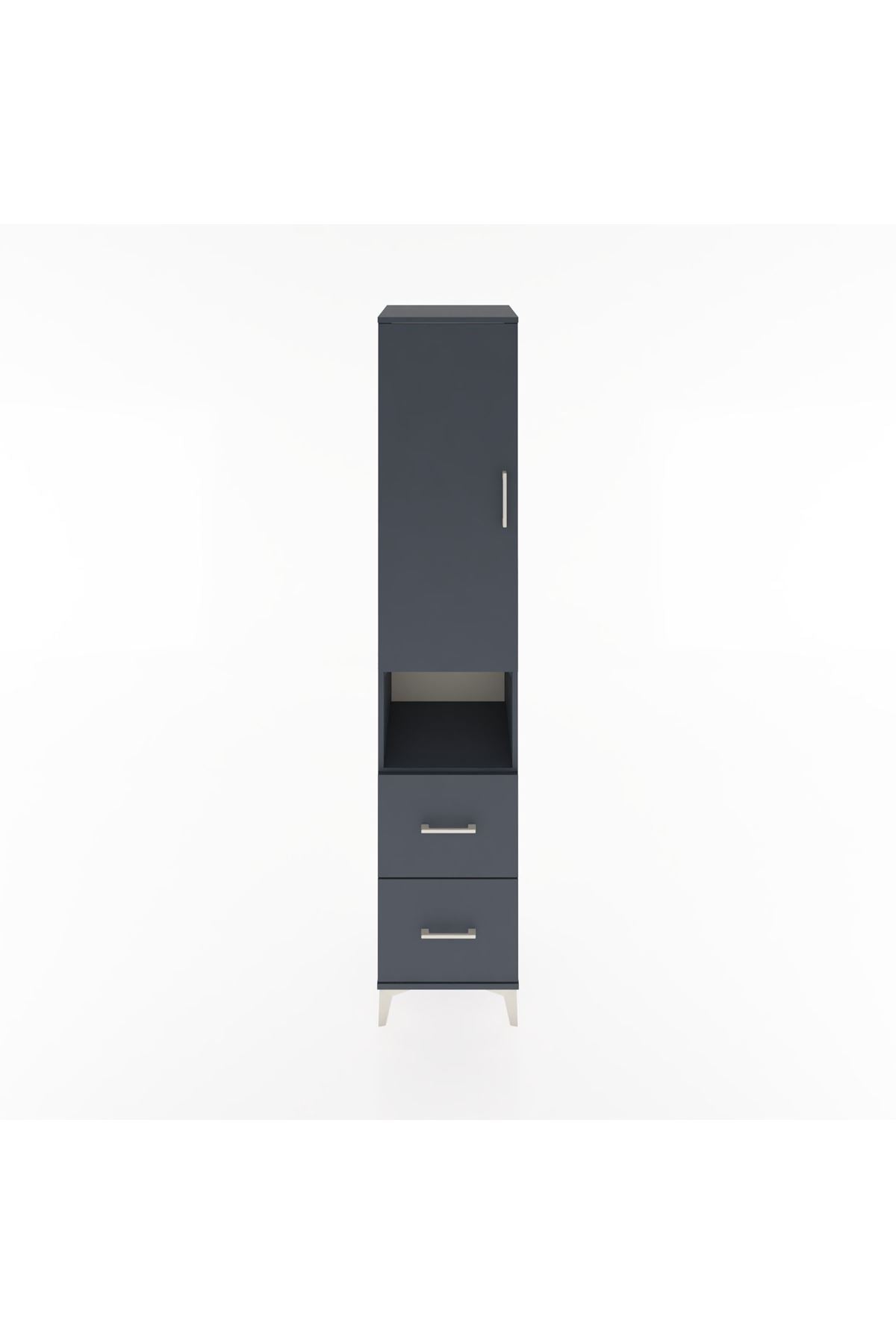 Hyperion Dolap 4 Raflı 2 Çekmeceli Tek Kapaklı 44x44x221 Antrasit-Antrasit
