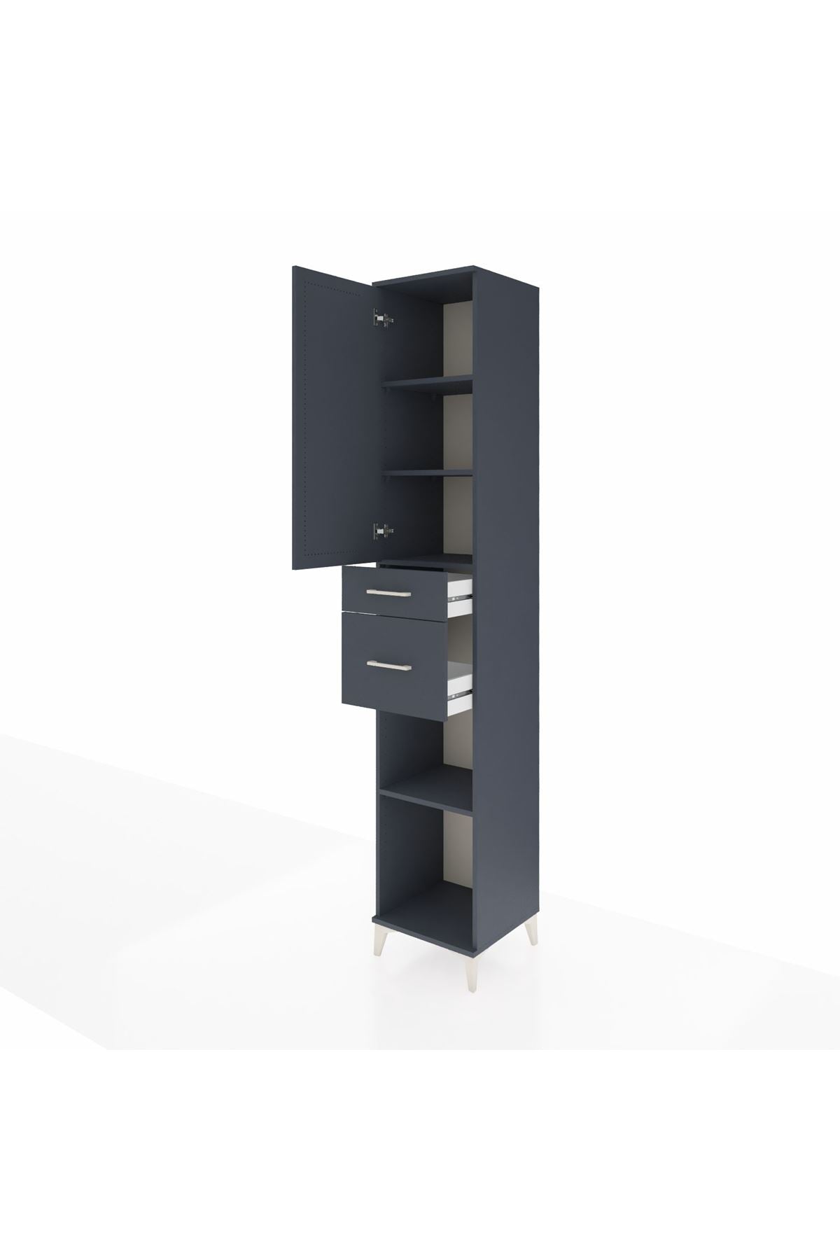 Hyperion Dolap 4 Raflı 2 Çekmeceli Tek Kapaklı 44x44x243 Antrasit-Antrasit