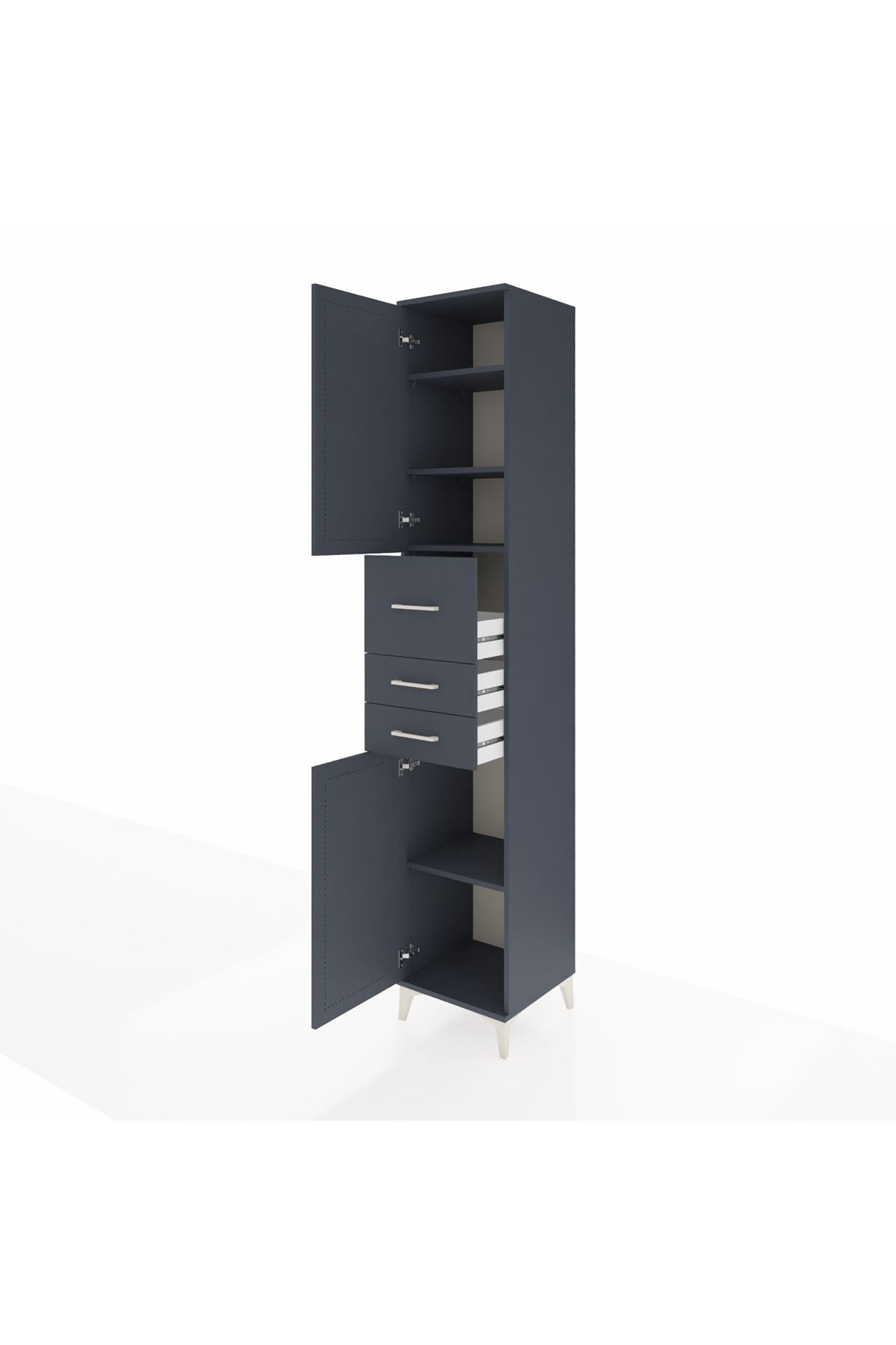 Hyperion Dolap 4 Raflı 3 Çekmeceli 2 Kapaklı 44x44x243 Antrasit-Antrasit