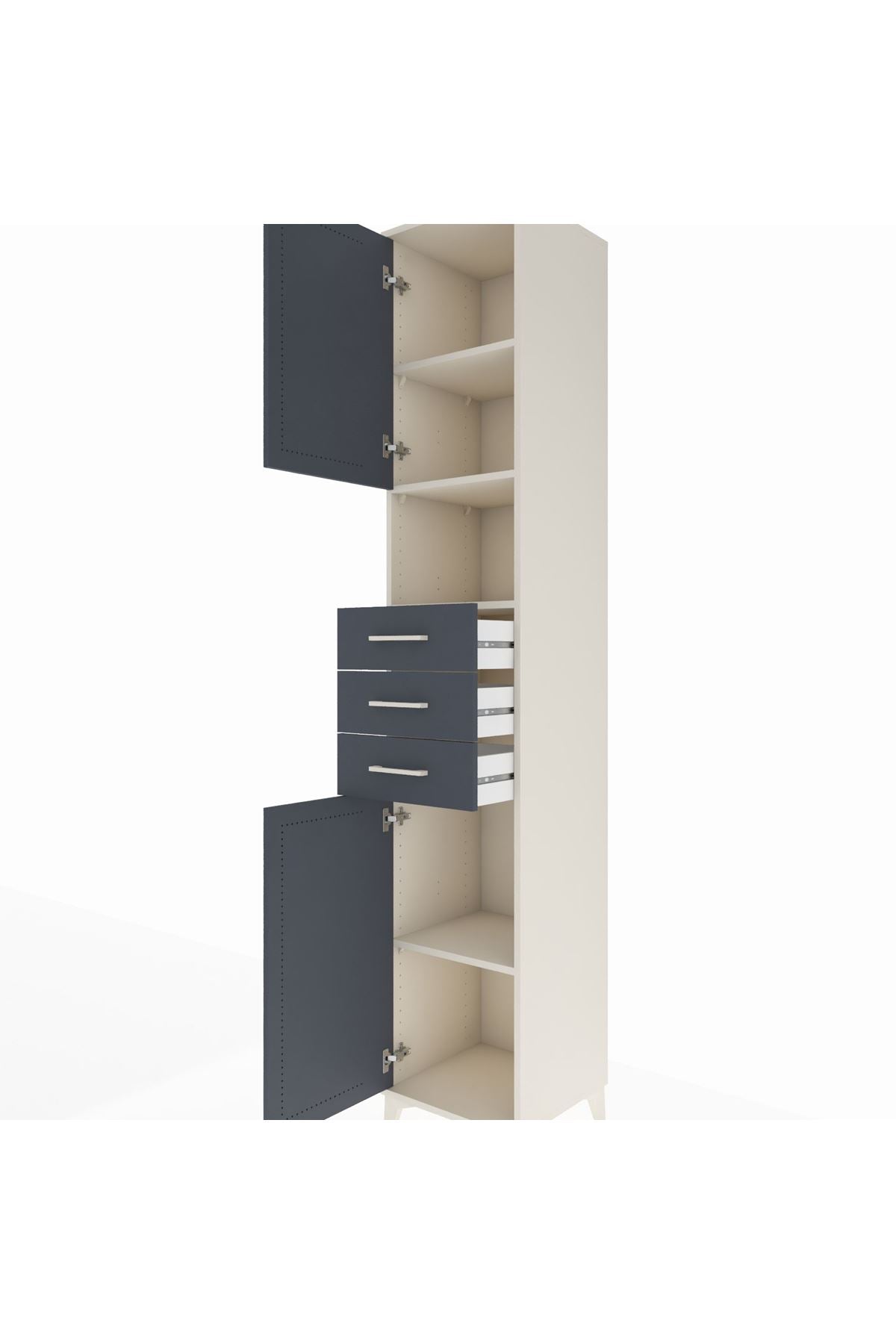 Hyperion Dolap 4 Raflı 3 Çekmeceli 2 Kapaklı 44x44x243 Aytaşı-Antrasit