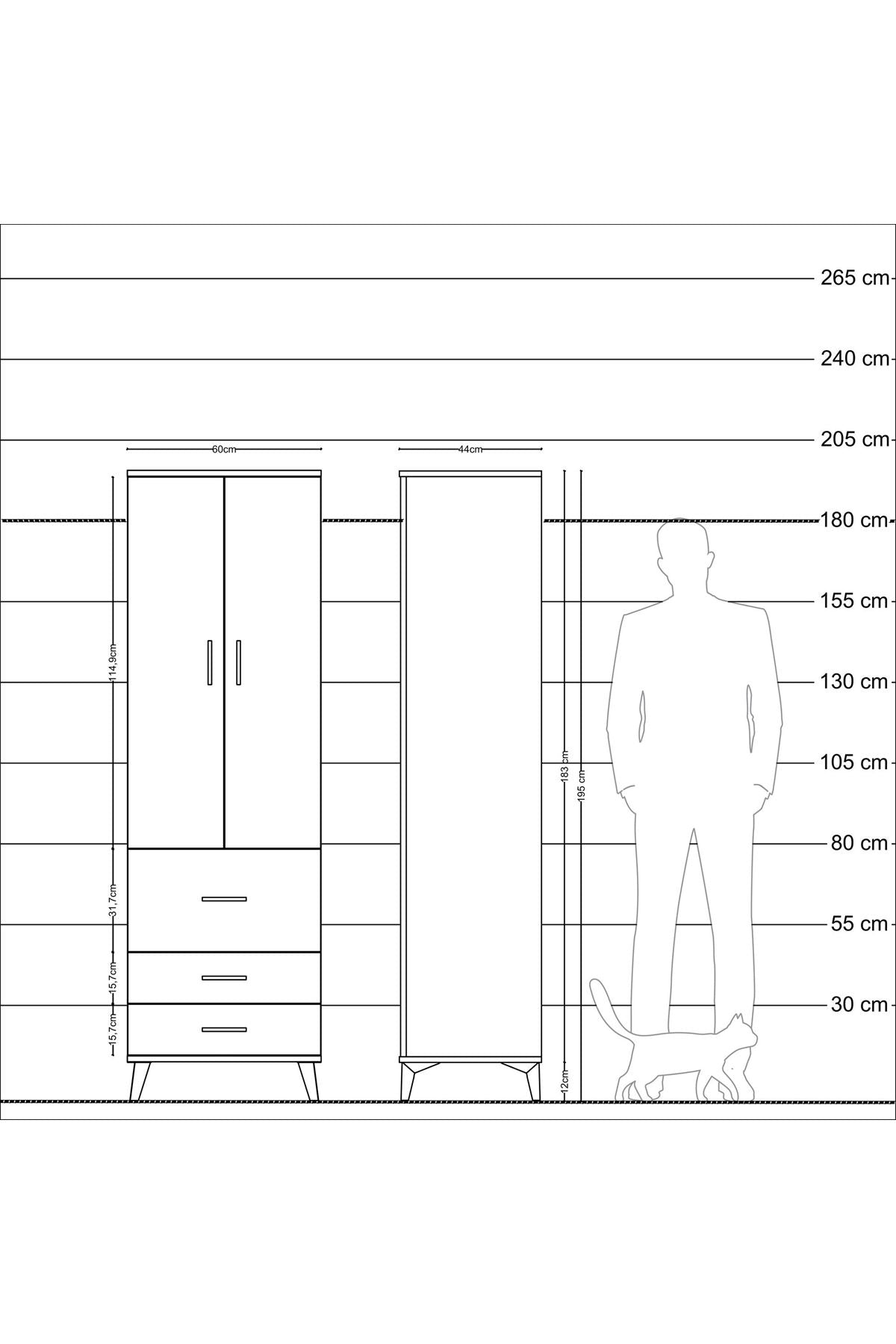 Hyperion Dolap 4 Raflı 3 Çekmeceli 2 Kapaklı 60x44x195 Antrasit-Çam
