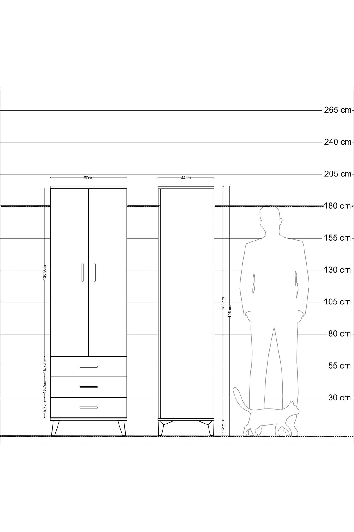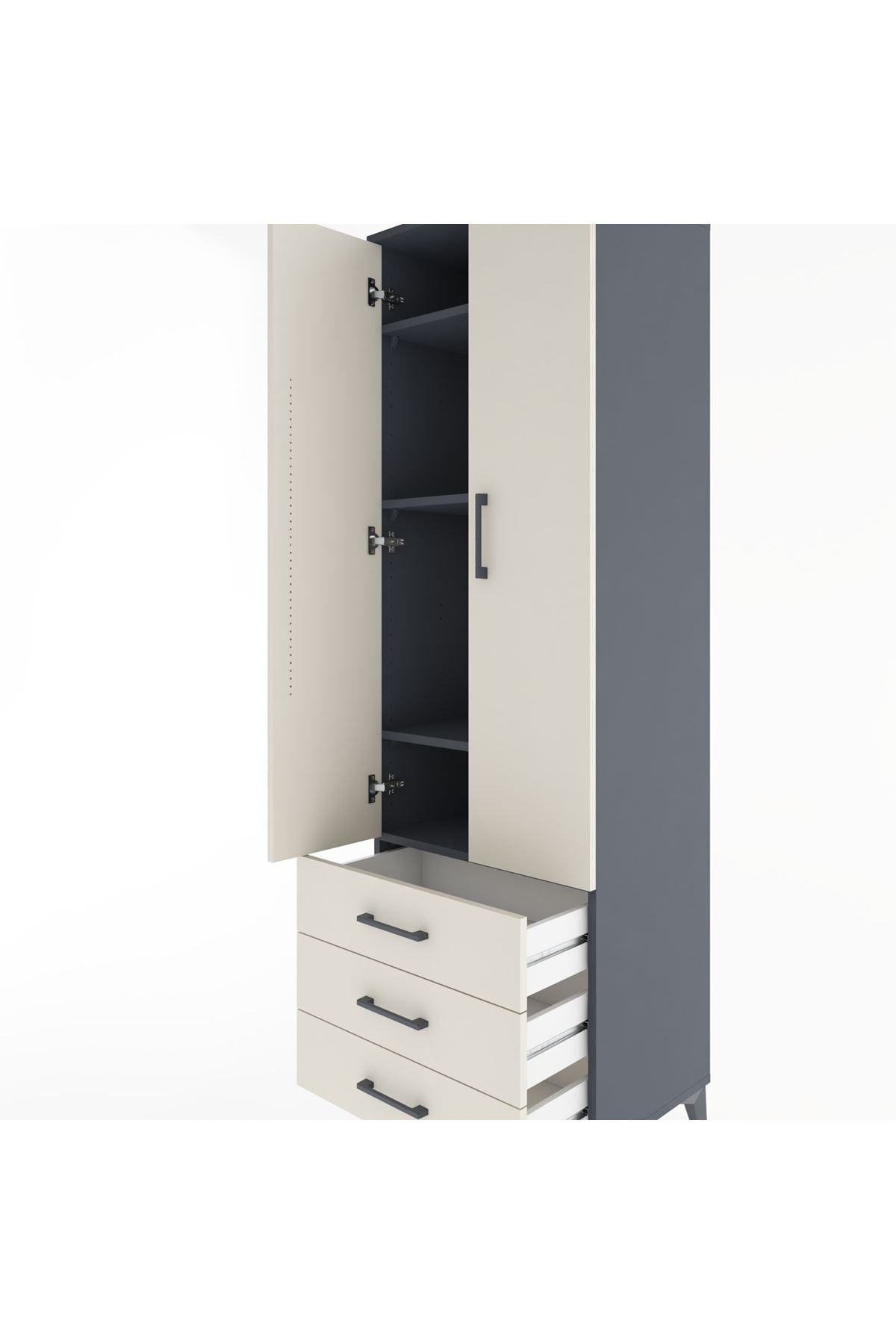 Hyperion Dolap 4 Raflı 3 Çekmeceli 2 Kapaklı 60x44x195 Antrasit-Aytaşı
