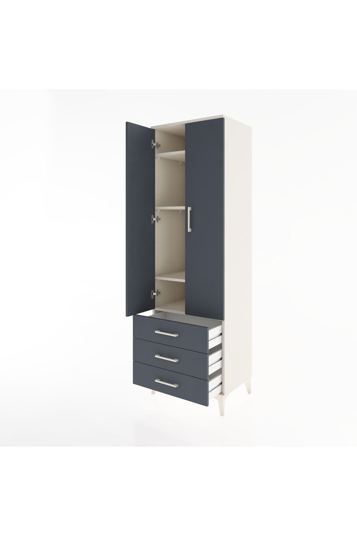 Hyperion Dolap 4 Raflı 3 Çekmeceli 2 Kapaklı 60x44x195 Aytaşı-Antrasit