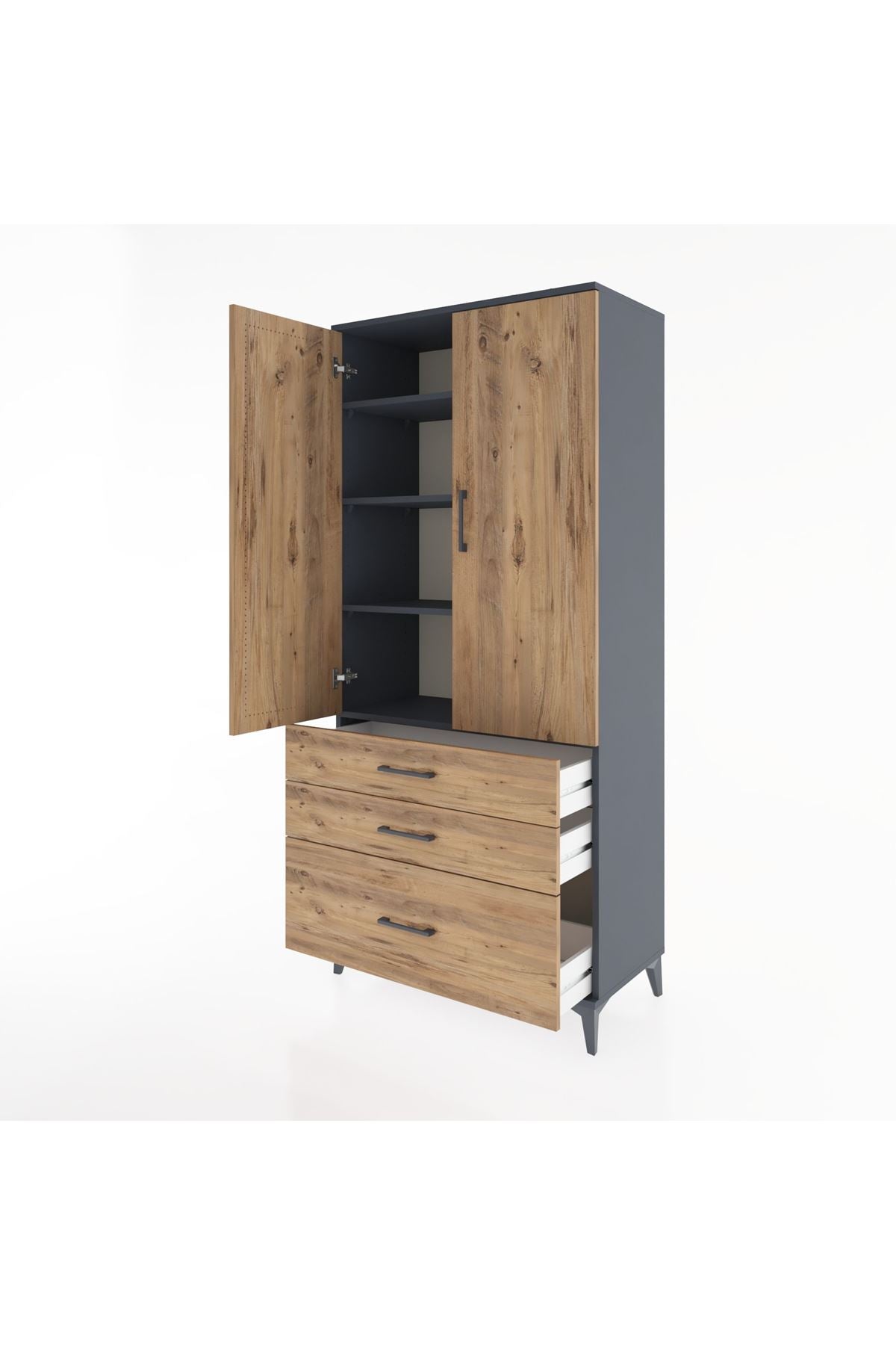 Hyperion Dolap 4 Raflı 3 Çekmeceli 2 Kapaklı 88x44x195 Antrasit-Çam