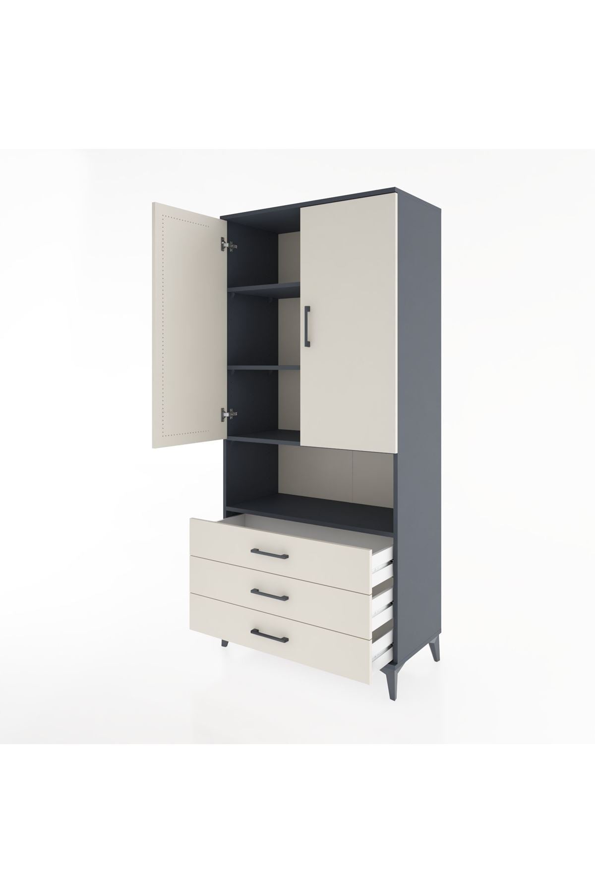 Hyperion Dolap 4 Raflı 3 Çekmeceli 2 Kapaklı 88x44x195 Antrasit-Aytaşı