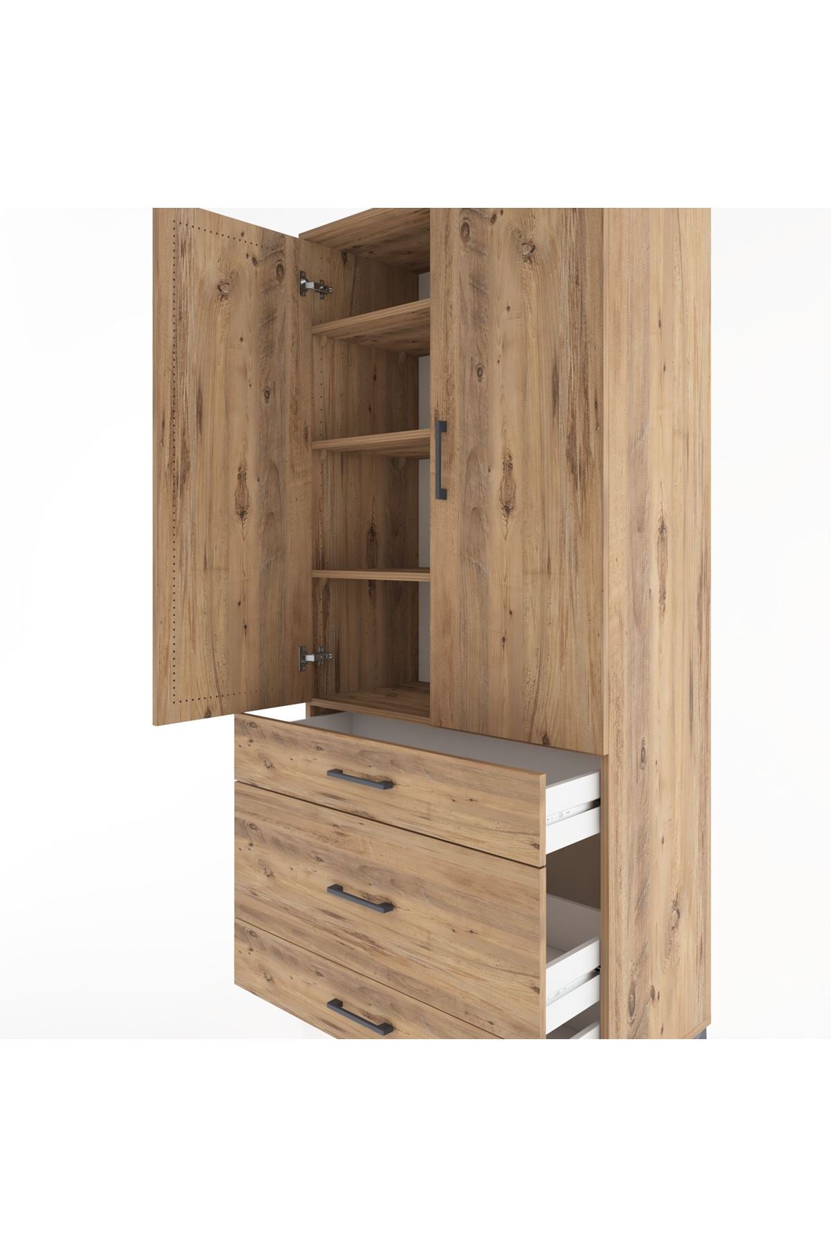 Hyperion Dolap 4 Raflı 3 Çekmeceli 2 Kapaklı 88x44x195 Çam-Çam