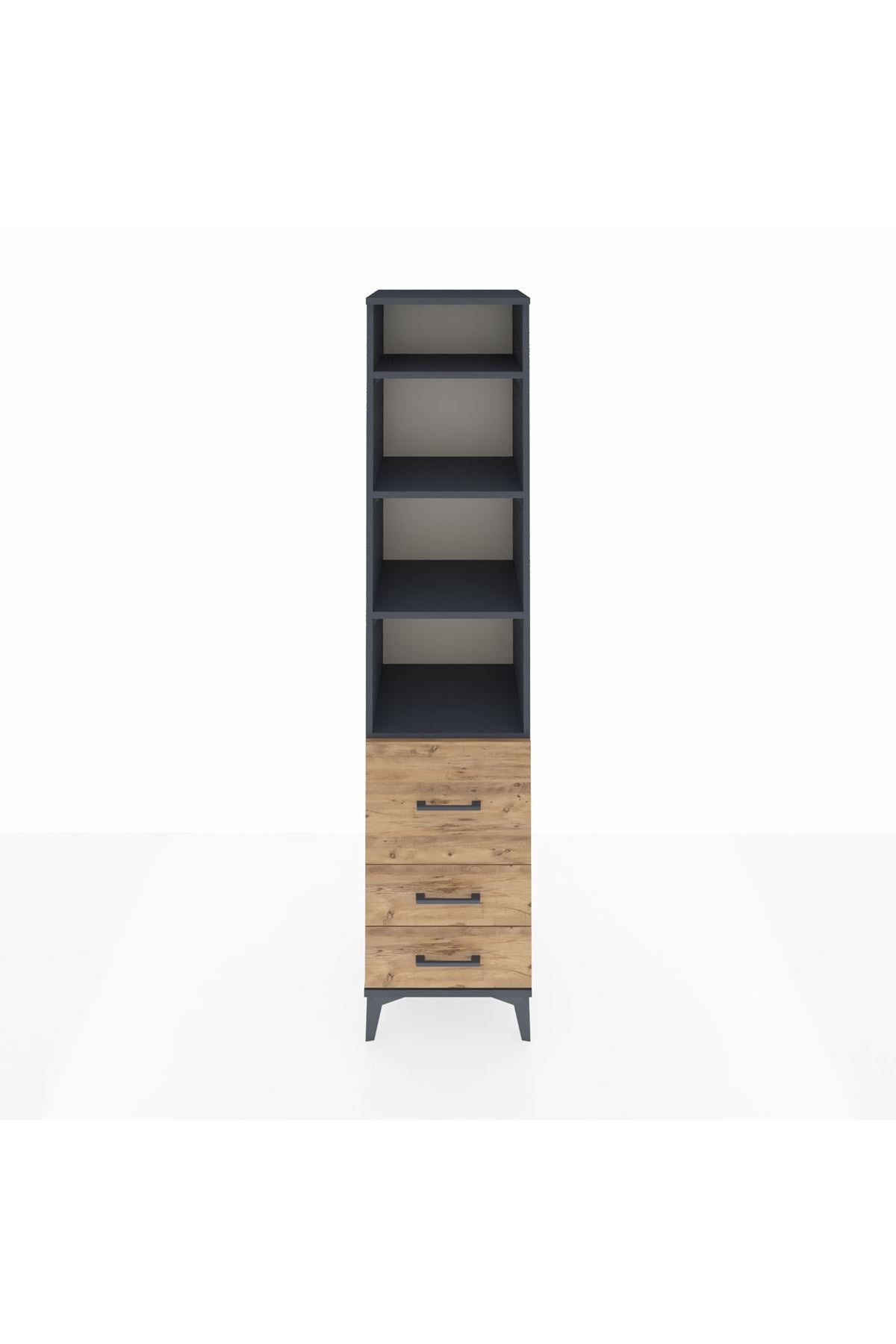 Hyperion Dolap 4 Raflı 3 Çekmeceli 44x44x195 Antrasit-Çam