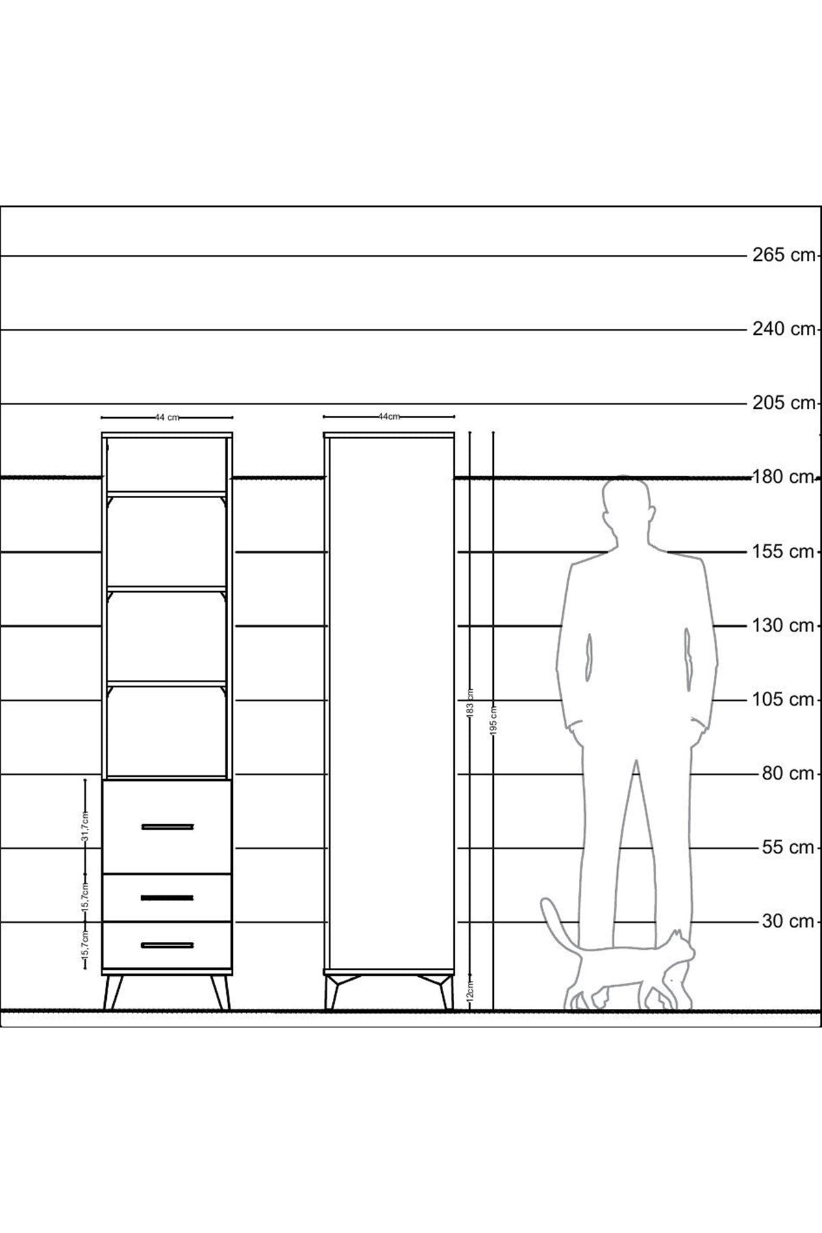 Hyperion Dolap 4 Raflı 3 Çekmeceli 44x44x195 Çam-Çam