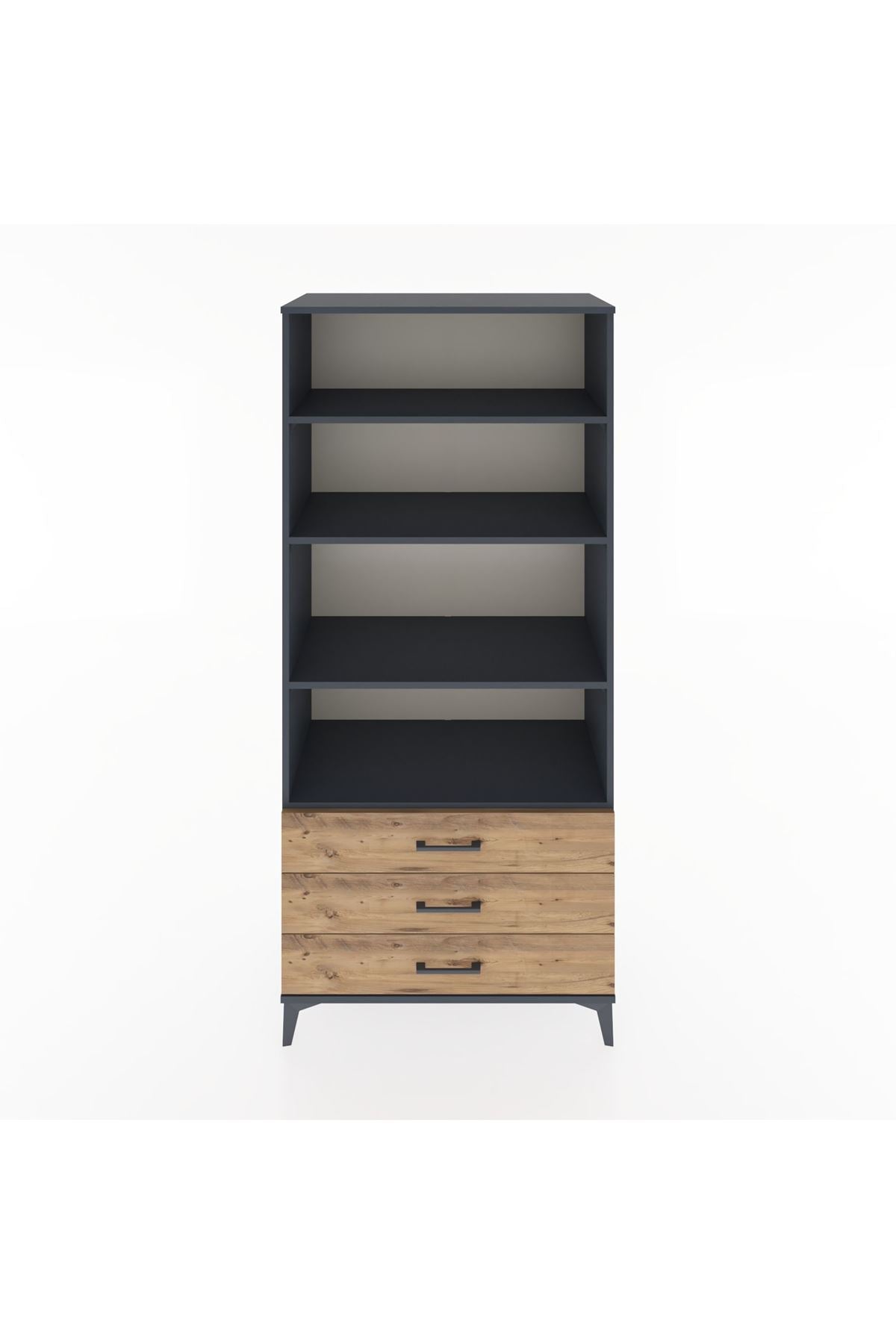 Hyperion Dolap 4 Raflı 3 Çekmeceli 88x44x195 Antrasit-Çam