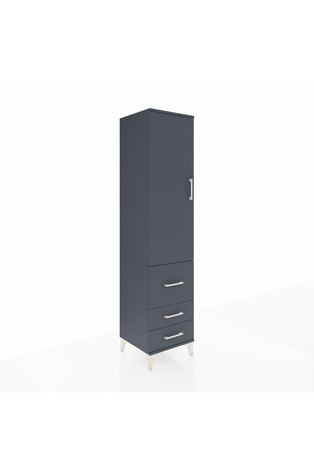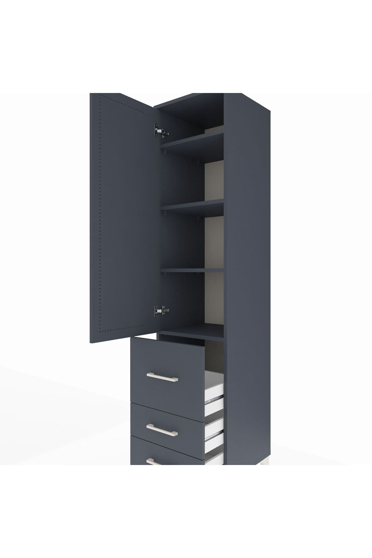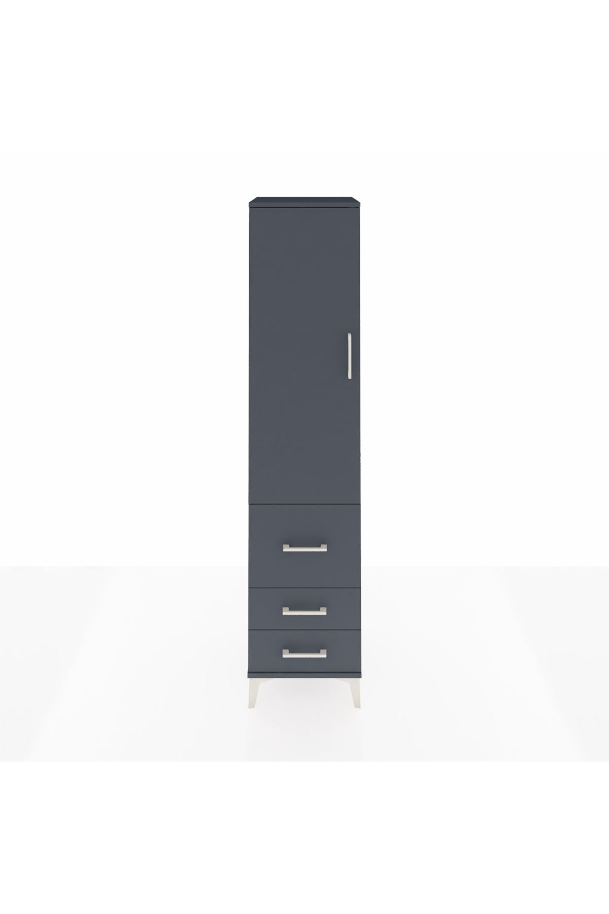 Hyperion Dolap 4 Raflı 3 Çekmeceli Tek Kapaklı 44x44x195 Antrasit-Antrasit